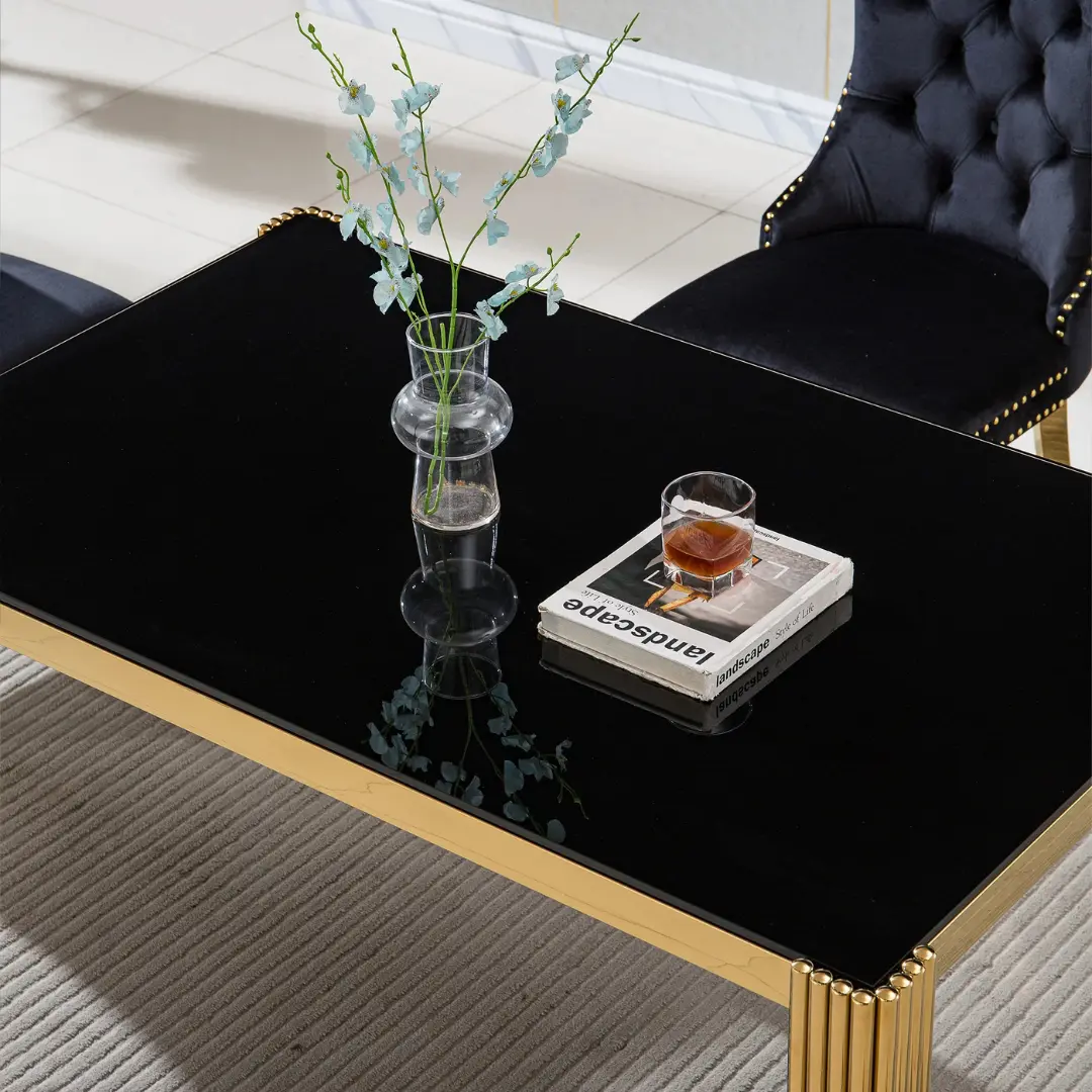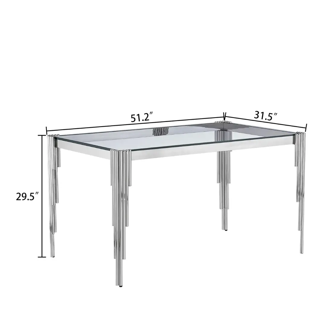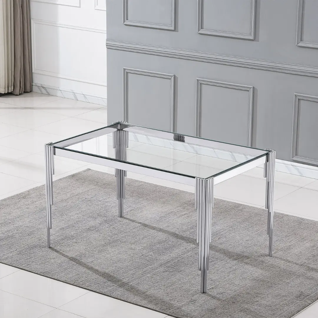 Every detail of this artisan-crafted piece is carefully considered to deliver performance without compromising on style. The DT0313 features a 10mm clear tempered glass top — not only showcasing high resistance to daily wear and high temperatures but also giving the piece its signature floating aesthetic. This robust surface rests atop a base of 201-grade stainless steel, engineered for superior strength and stability.