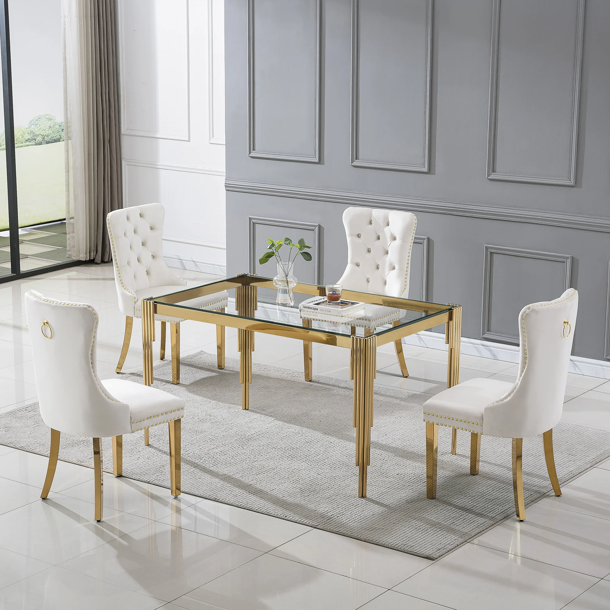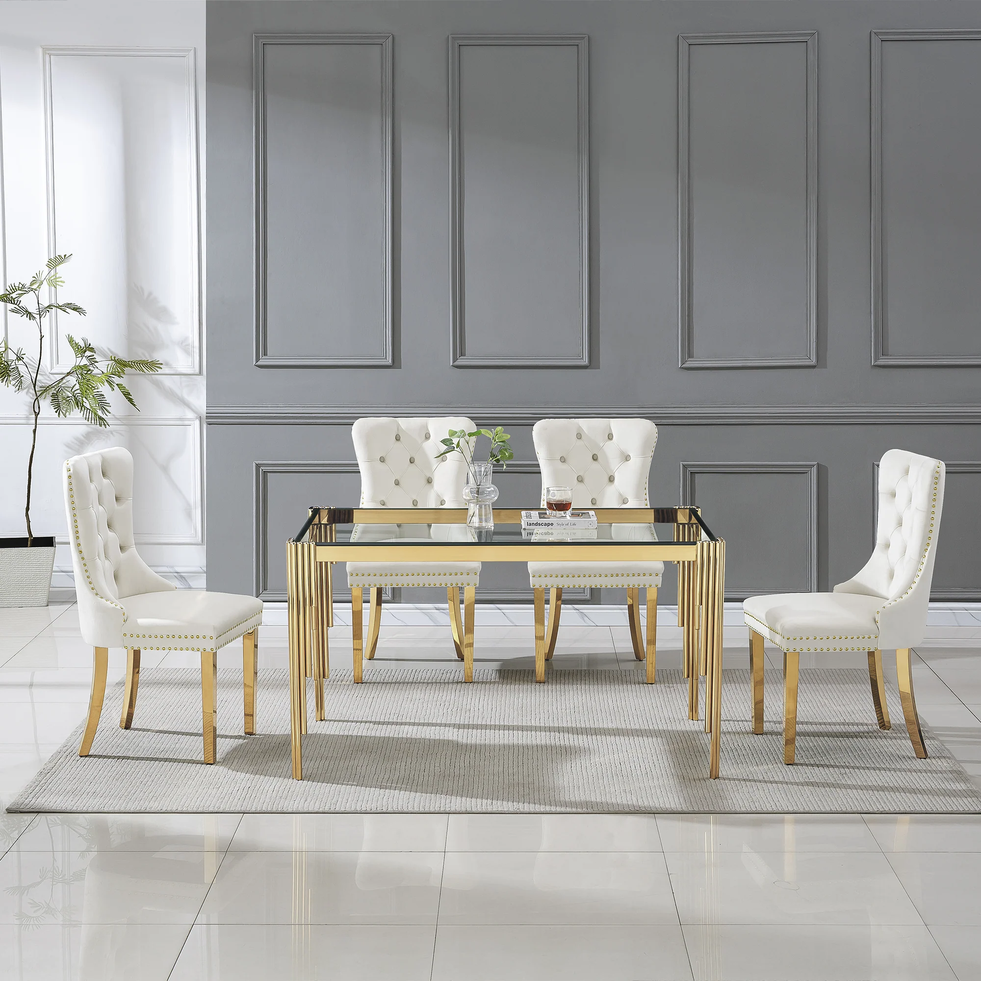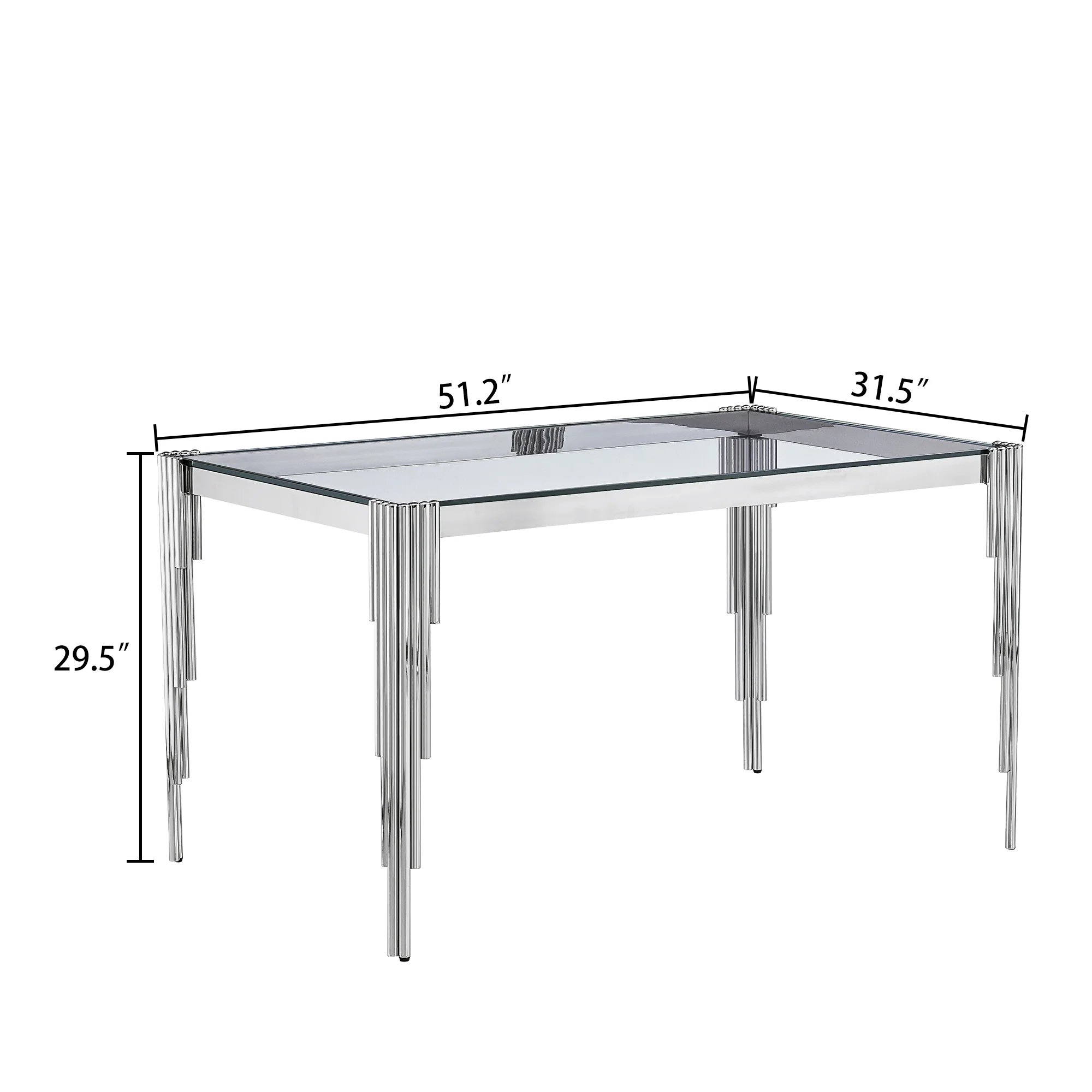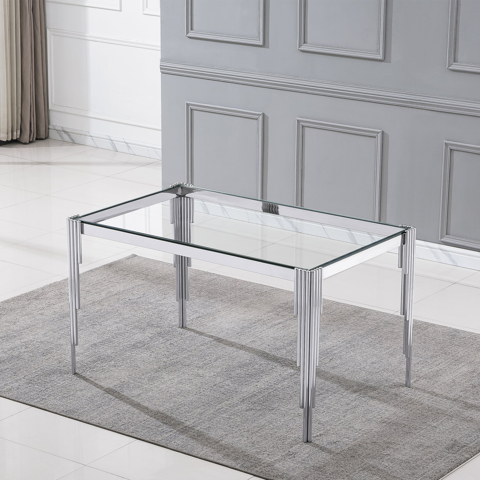 Transform your dining space with the elegance and durability of our glass tempered dining table, a stunning blend of modern design and artisan craftsmanship. This sophisticated table features a 10mm clear tempered glass top, offering both exceptional strength and a sleek, polished surface that enhances any interior. The foundation is crafted from 201 stainless steel, ensuring long-lasting stability and support. A striking gold and silver mirrored finish adds a touch of luxury, reflecting light beautifully to create an inviting and upscale ambiance. Designed to be more than just a dining table, this artisan dining table serves as a statement piece that seamlessly merges contemporary style with timeless sophistication—perfect for those who appreciate both aesthetics and quality.