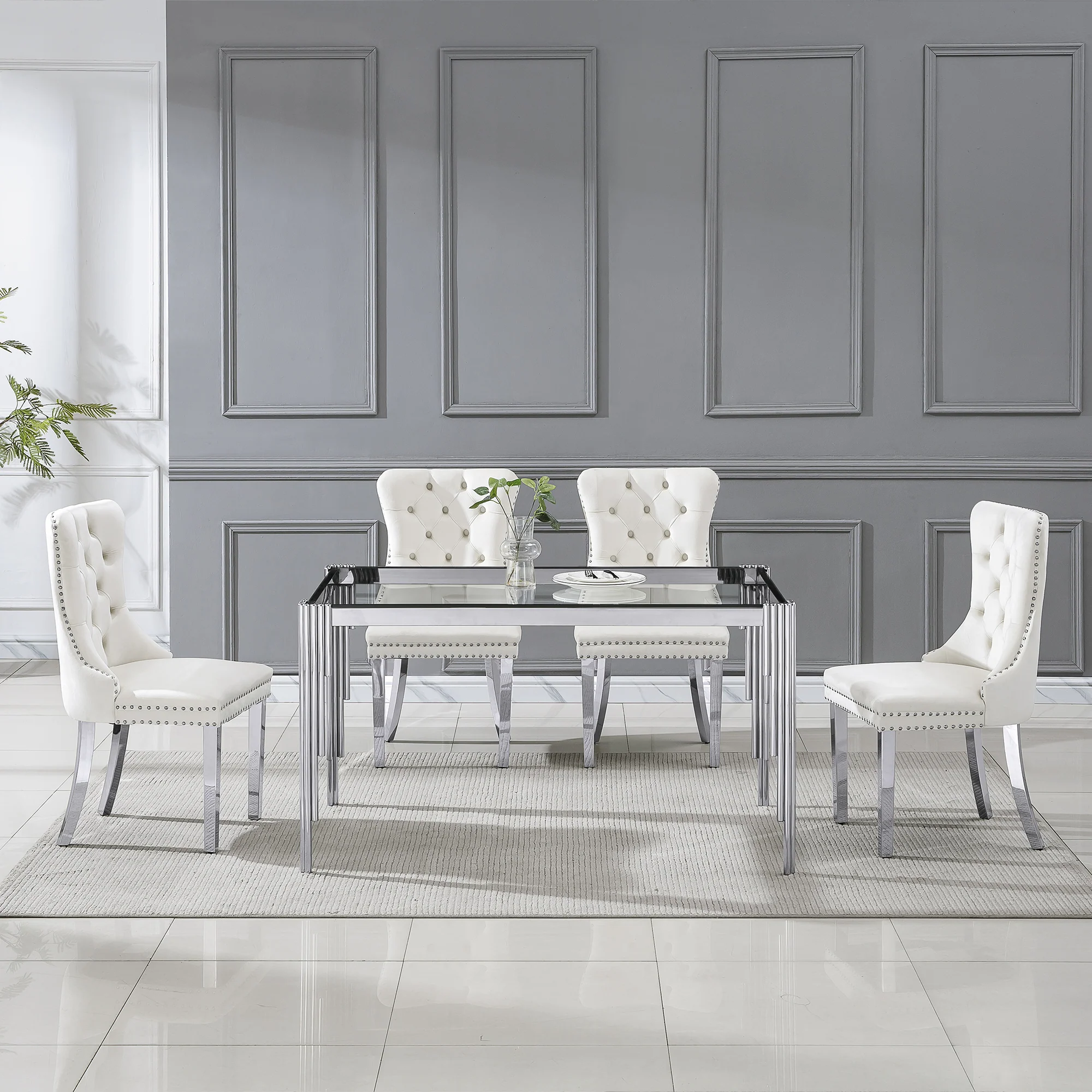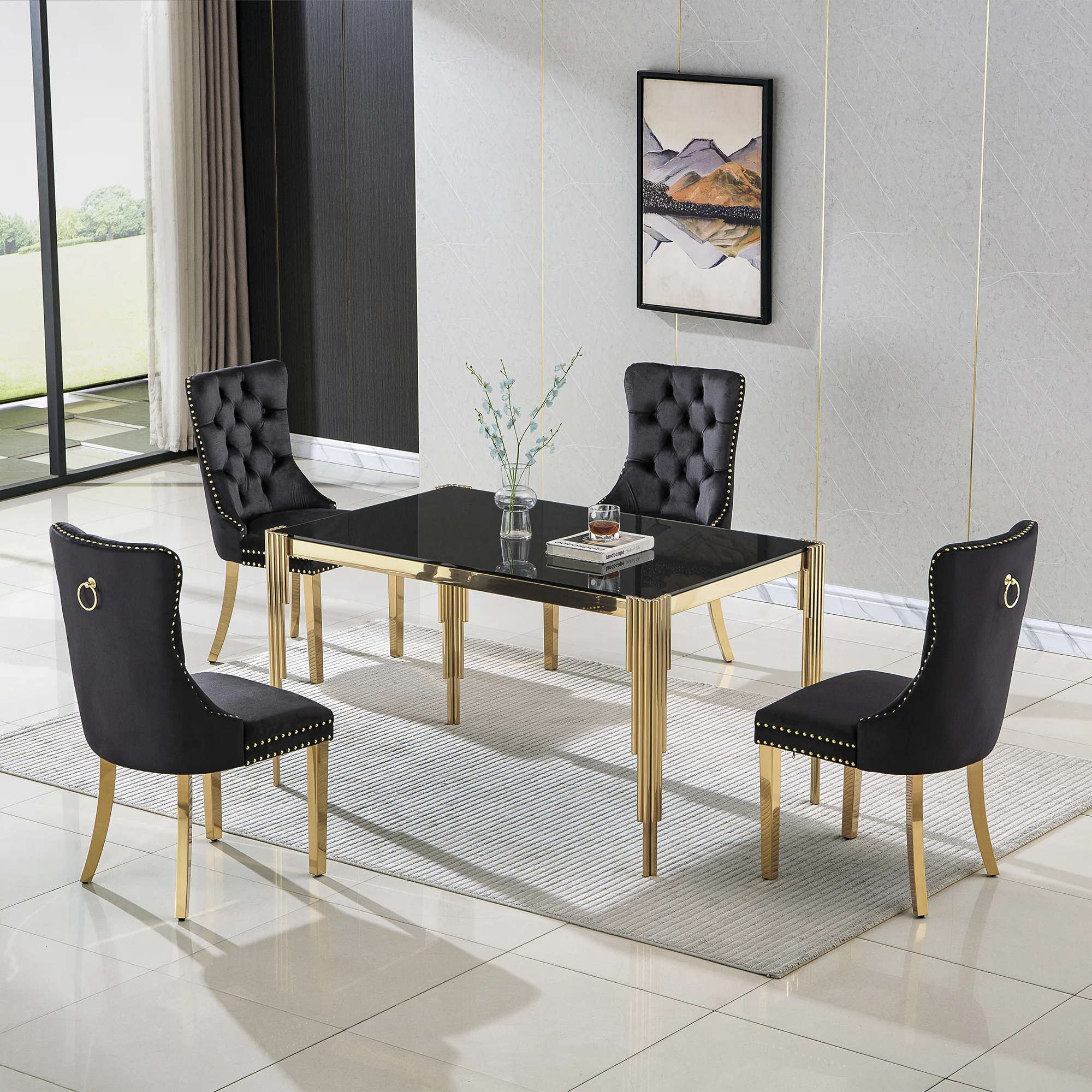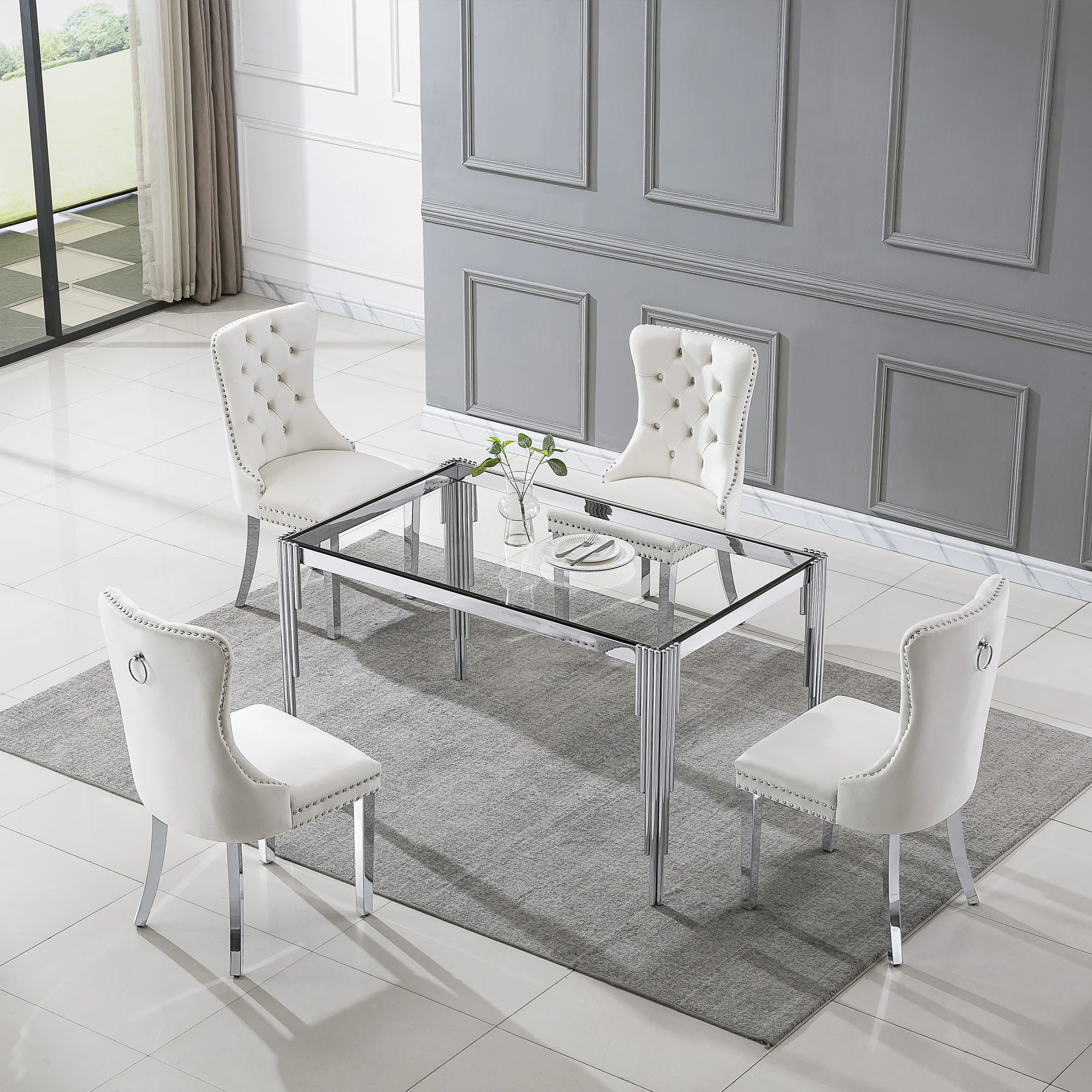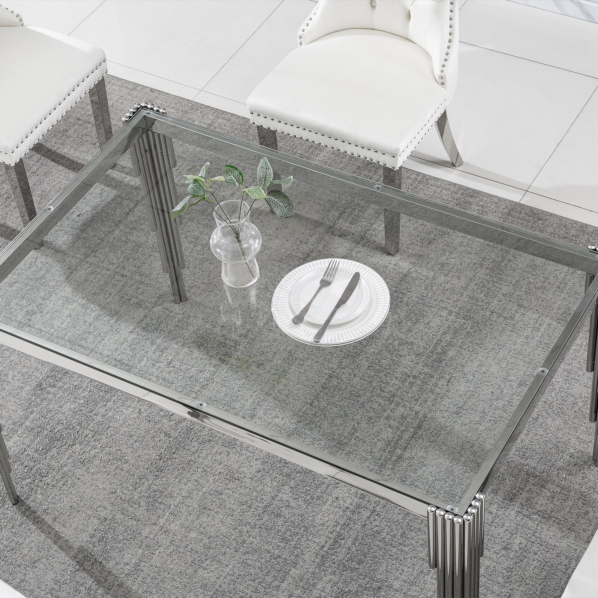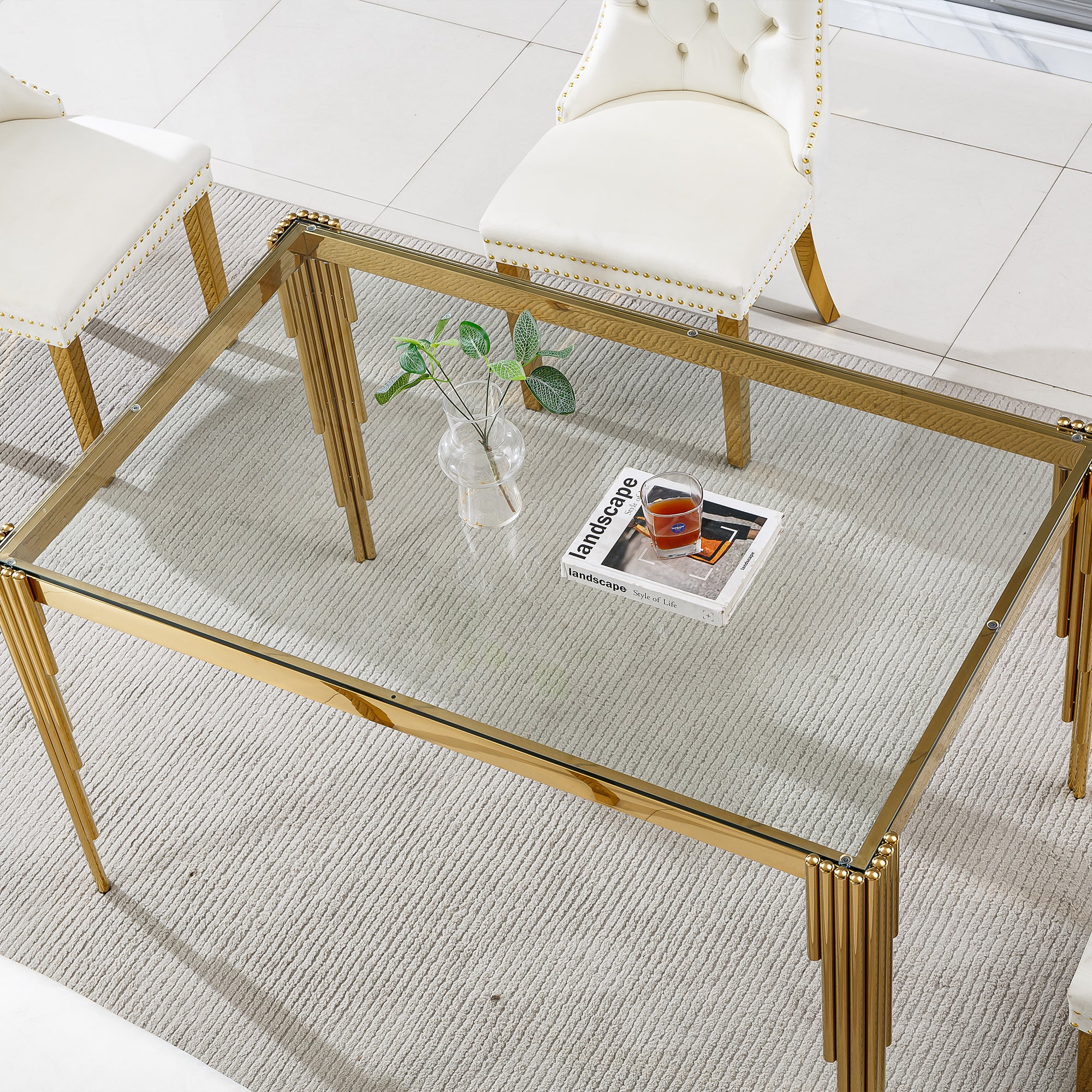 Transform your dining space with the elegance and durability of our glass tempered dining table, a stunning blend of modern design and artisan craftsmanship. This sophisticated table features a 10mm clear tempered glass top, offering both exceptional strength and a sleek, polished surface that enhances any interior. The foundation is crafted from 201 stainless steel, ensuring long-lasting stability and support. A striking gold and silver mirrored finish adds a touch of luxury, reflecting light beautifully to create an inviting and upscale ambiance. Designed to be more than just a dining table, this artisan dining table serves as a statement piece that seamlessly merges contemporary style with timeless sophistication—perfect for those who appreciate both aesthetics and quality.