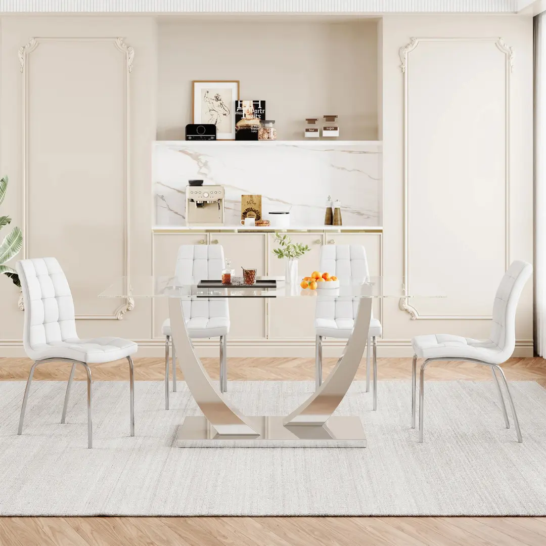 - Premium Stainless Steel Base: Crafted from 201 stainless steel, the striking base is available in your choice of a gold or silver mirrored finish—enhancing the table with a refined, reflective elegance.