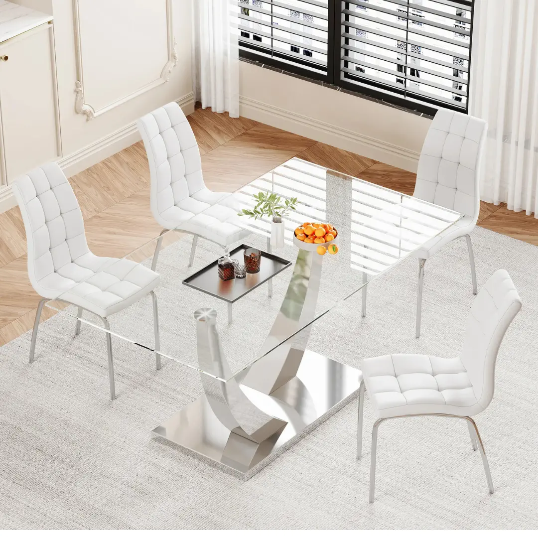 Elevate your dining area with the DT035 Glass Top Dining Room Table By Artisan Furniture — a statement-making centerpiece that blends minimalist elegance with enduring quality. Designed for discerning individuals who value craftsmanship and contemporary aesthetics, this tempered glass dining table brings both visual impact and timeless style to modern interiors.