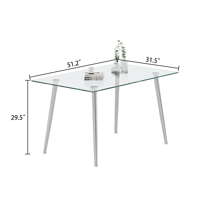 The glass dining table set for 4 with chairs is a perfect blend of modern sophistication and durable craftsmanship, designed to elevate any dining space. The rectangular dining table, featuring 8mm tempered glass with a sleek silver mirrored finish, adds a touch of contemporary elegance while ensuring long-lasting durability. Complementing this stunning table are four stylish chairs, available in black silver, crafted with premium fabric, sponge cushioning, MDF, and sturdy metal legs for both comfort and stability. This dining table with tempered glass and dining chairs with metal legs creates a refined and inviting atmosphere, making every meal a luxurious experience. Whether for intimate dinners or stylish gatherings, this set is a statement piece that combines elegance with everyday functionality.