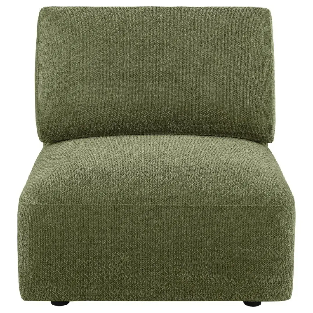 Crafted with a low-profile silhouette and deep seating comfort, it blends effortlessly into modern interiors while offering the freedom to reconfigure pieces as your space evolves. The soft green chenille fabric adds a rich texture that enhances warmth and sophistication.