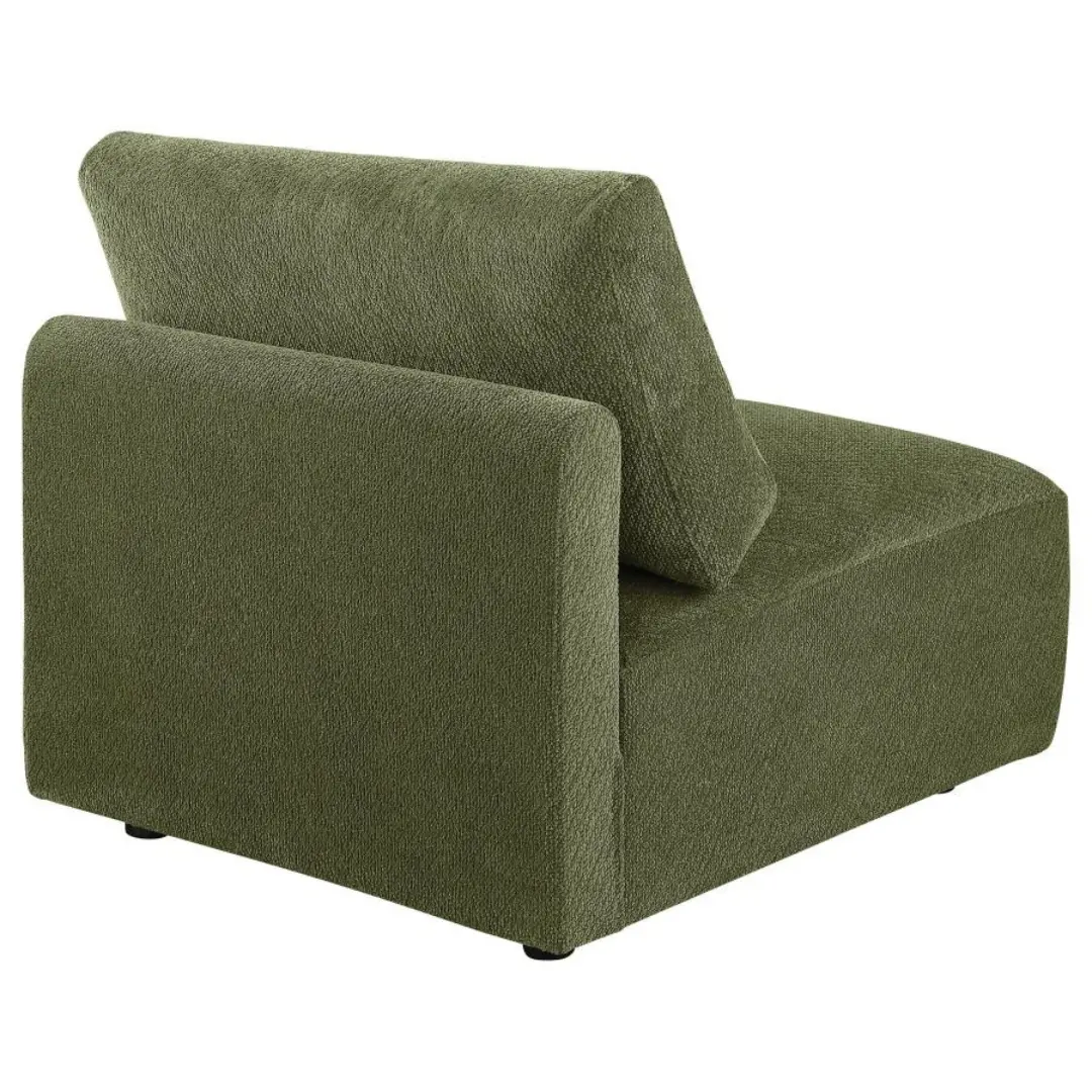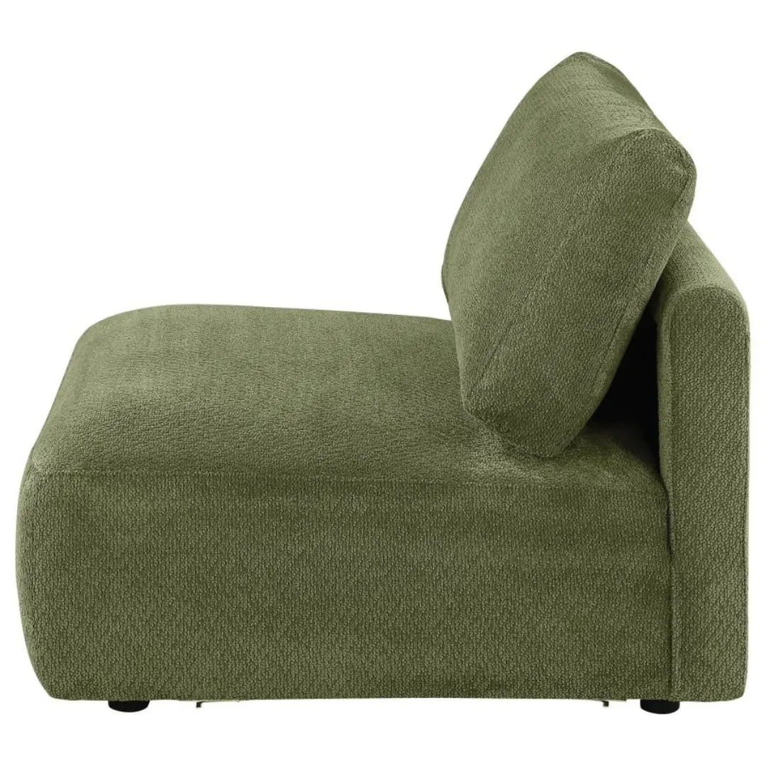 Bring comfort, versatility, and modern elegance into your living space with this green upholstered chair from the Elysia collection. Designed for contemporary homes, this modular armless chair offers a perfect balance of style and function, making it easy to create a seating arrangement that evolves with your needs.