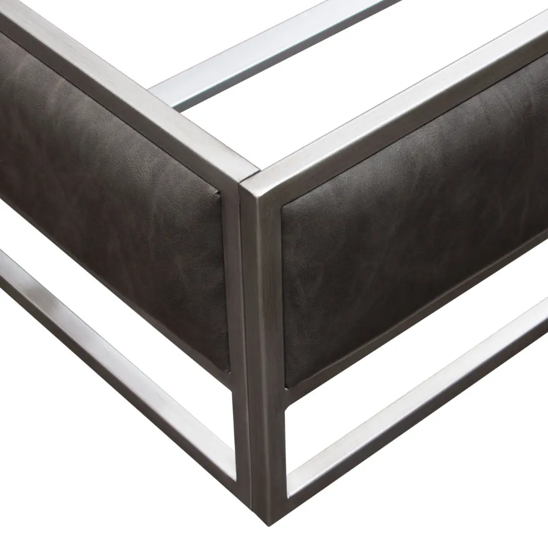 - Material: Leather upholstery, Hand brushed metal frame, Metal slats