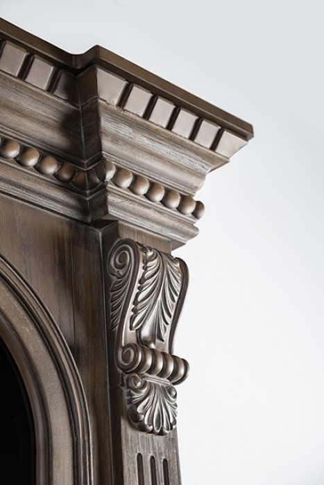 Intricate carved accents enhance the timeless design
