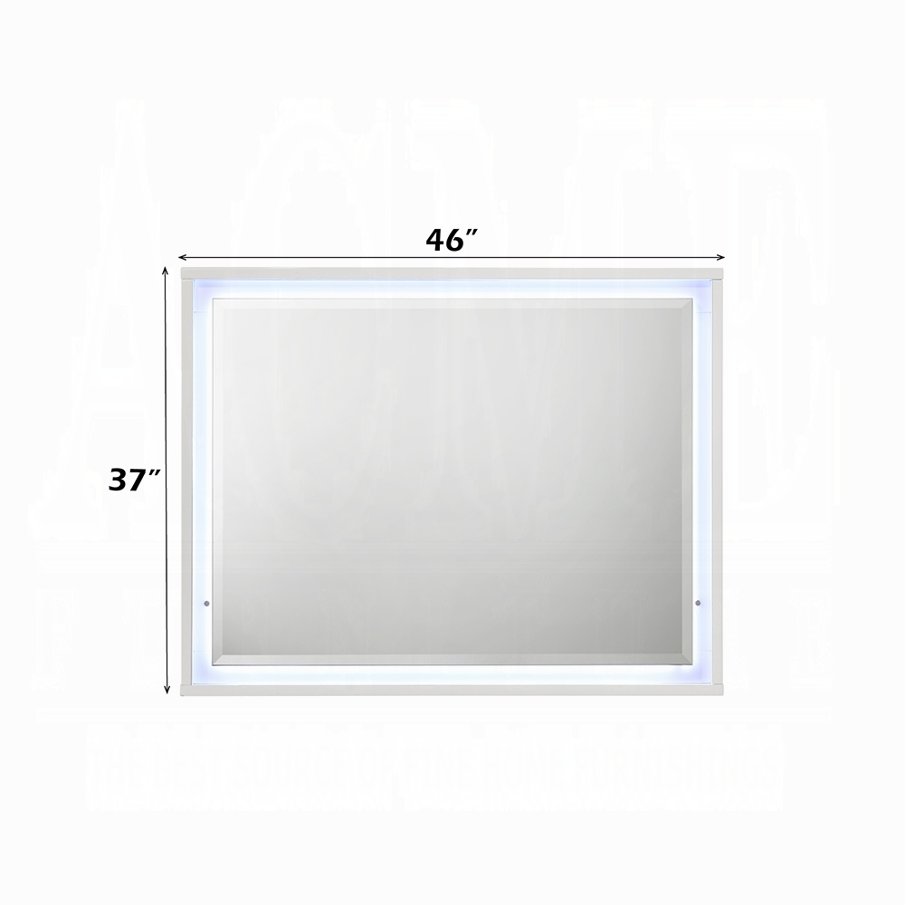 Constructed from durable MDF and metal, the Esther LED Mirror is engineered for both longevity and aesthetic cohesion. Its dimensions (46″ × 2″ × 37″) make it a perfect companion for the high-gloss bed and nightstand in the same collection.