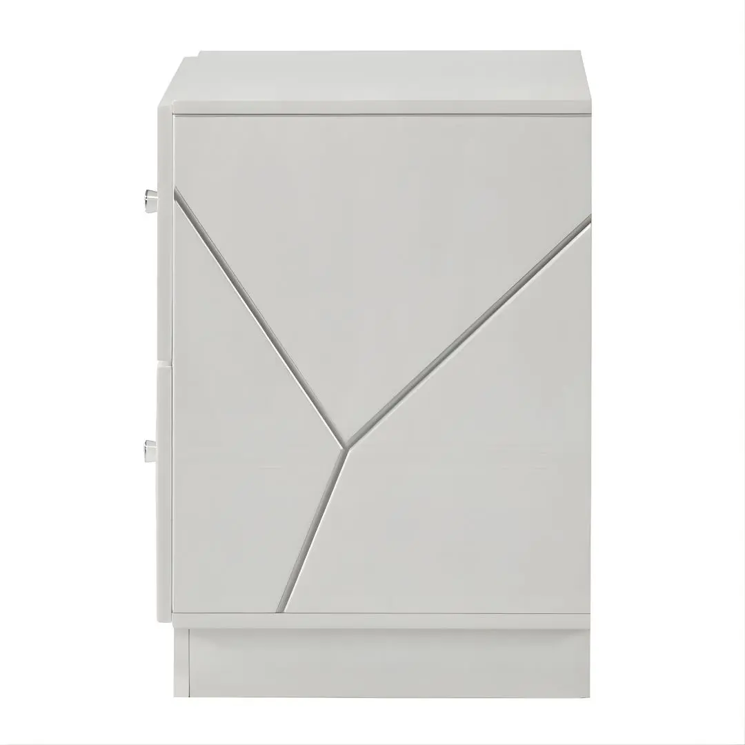 Esther White & Silver High Gloss Nightstand — Modern & Elegant