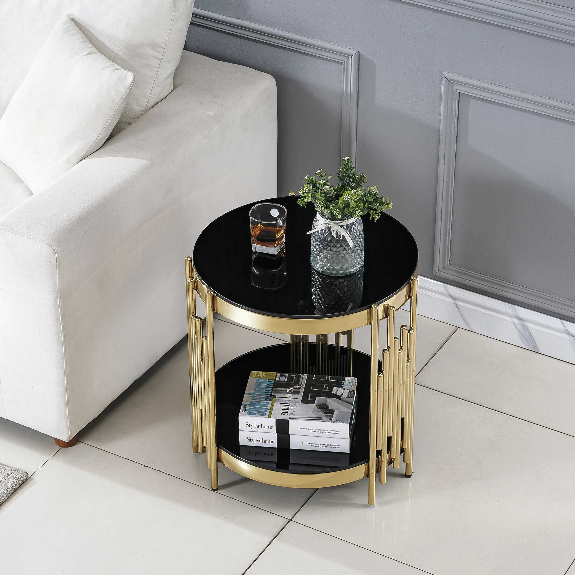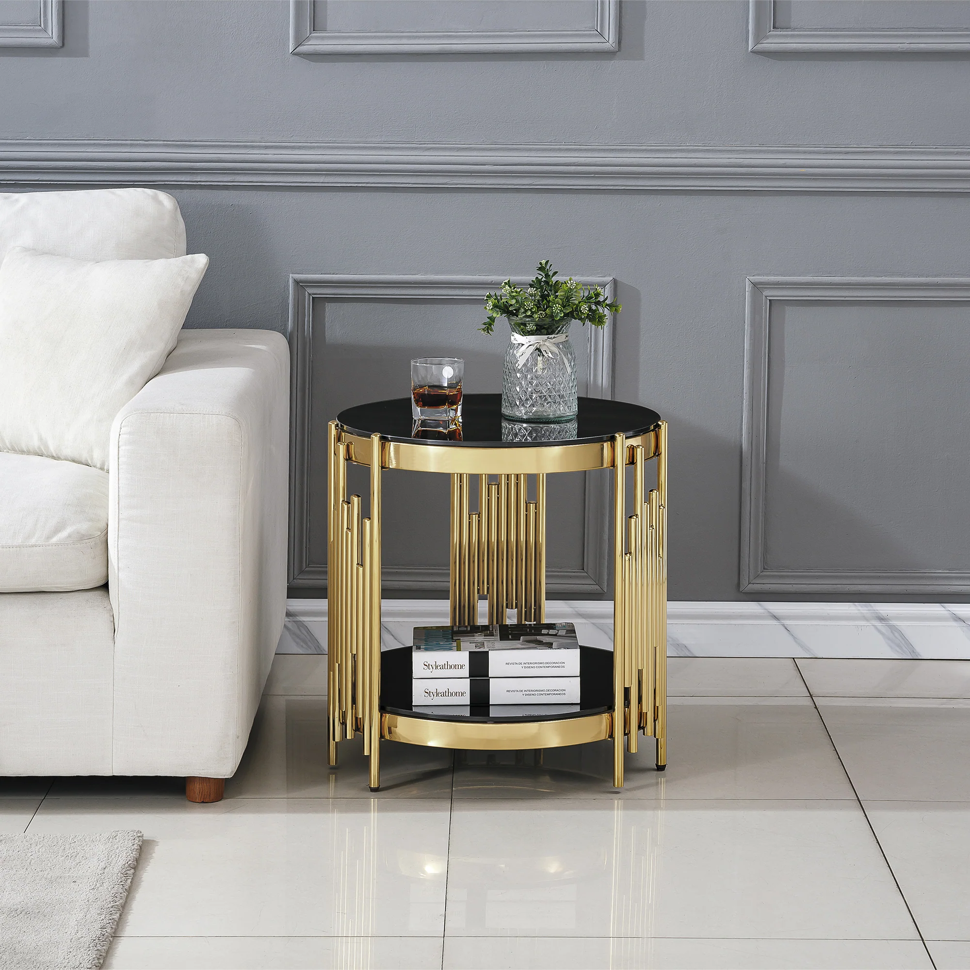 A table with a glass top is the perfect fusion of modern elegance and timeless sophistication, and this round end table is no exception. Designed to elevate any living space, it features an 8mm clear or black tempered glass top, offering a sleek and airy aesthetic while ensuring durability. The sturdy 201 stainless steel frame, finished in a luxurious gold or silver mirrored coating, adds a touch of refinement and contemporary flair. Whether used as an accent piece or a functional surface, this exquisite table is a statement of style and craftsmanship.