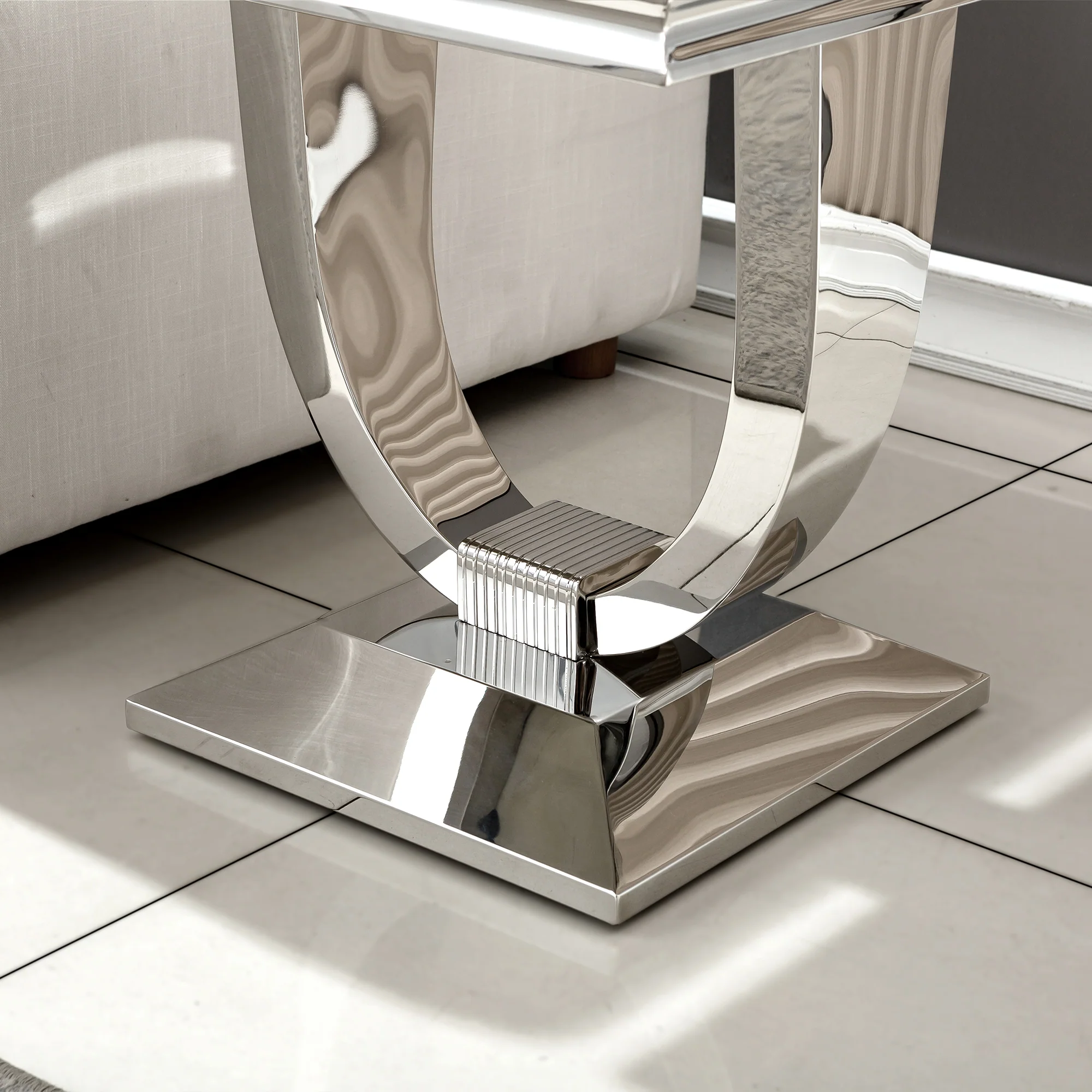 Featuring an 18mm thick marble top in a stunning white and black finish, this piece captures visual interest with natural veining patterns that guarantee each table is unique. The high-grade 201 stainless steel base comes polished in your choice of gold or silver mirror finish, striking a harmonious balance between durability and glamour. A choice complement to modular sofas and designer accent chairs, the ET317 is an essential for any high-end décor setting.