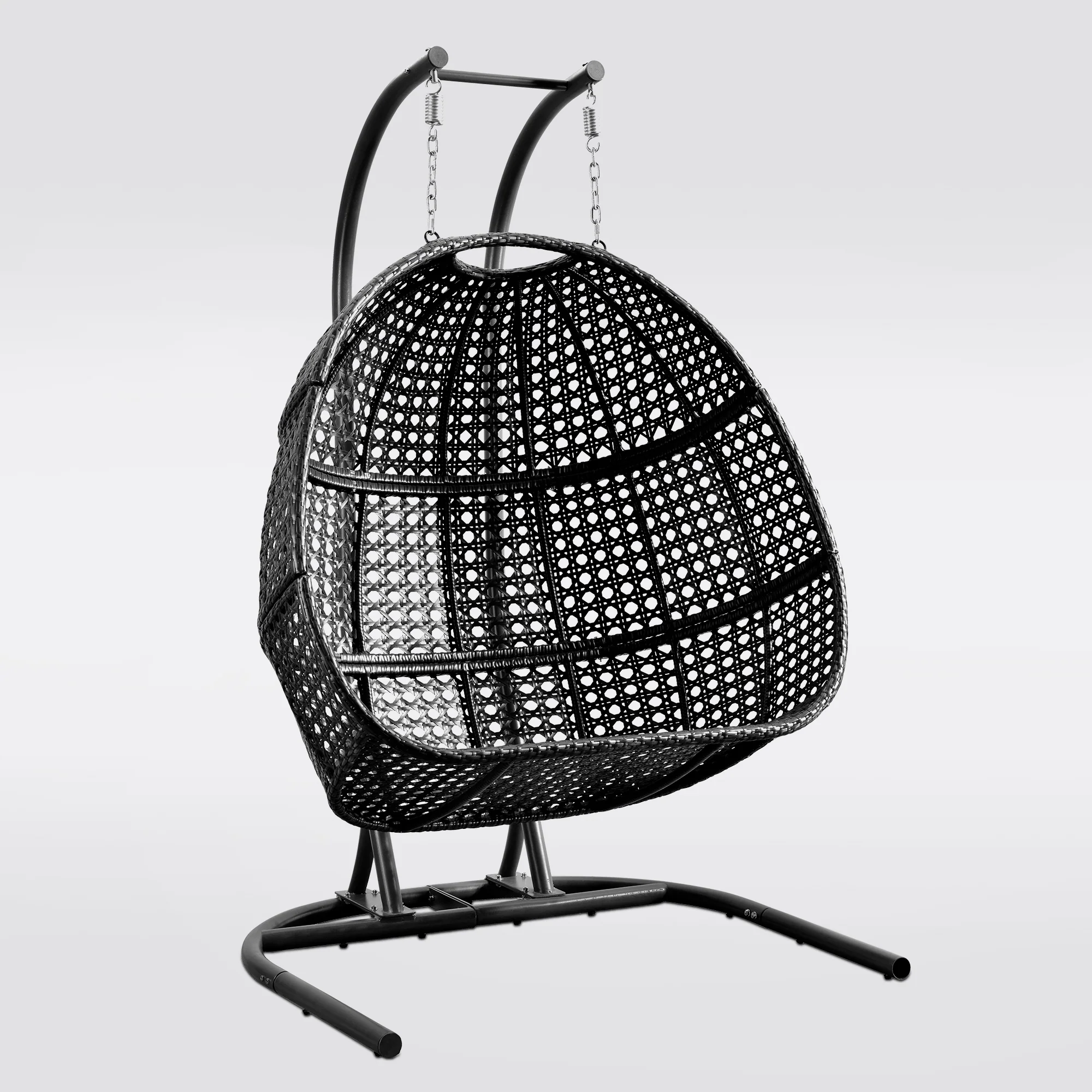 A swing chair outdoor patio setup isn’t just about relaxation—it’s about making a statement. This double swing chair is designed for both comfort and durability, featuring a sturdy metal frame wrapped in premium PE rattan, ensuring long-lasting outdoor enjoyment. Built to hold up to 400 lbs, it offers a secure and cozy retreat for two. Choose between sleek black with a soft grey cushion for a modern touch or bold black with a vibrant red cushion for a striking contrast. Whether you’re unwinding solo or sharing a moment, this swing chair transforms your patio into a stylish oasis.