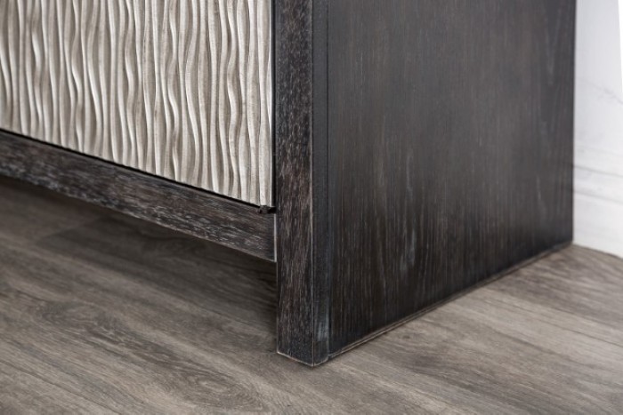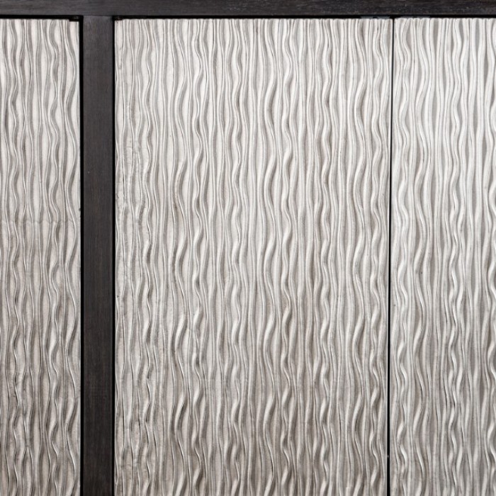 Bring modern artistry into your home with the Forger 4-Door Cabinet, a striking combination of sleek geometry, textured detailing, and practical storage. Designed in a two-tone Weathered Black and Silver finish, this cabinet stands out with its silver wavy embossed pattern—a sculptural touch that adds depth and movement to any interior.