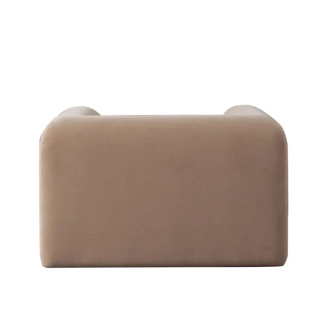 With its curved silhouette and generous proportions, this modern living room chair becomes an instant focal point in any sophisticated space.