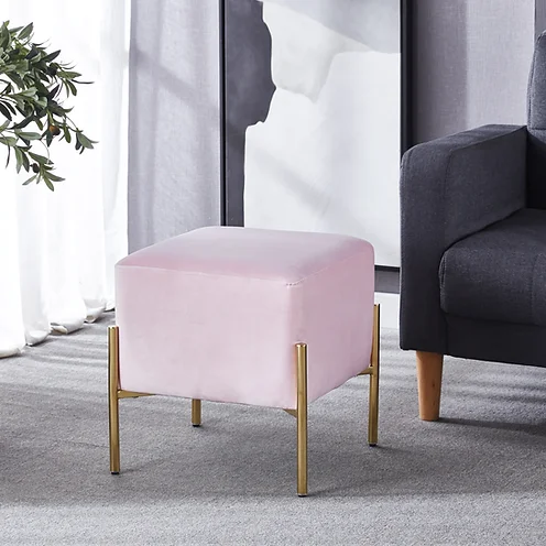 The G02 square ottoman is the perfect blend of luxury and functionality, making it an essential piece of artisan living room furniture. Upholstered in plush velvet, this elegant ottoman offers a soft and inviting touch, while its stainless steel legs with a gold finish provide a sleek and modern aesthetic. Designed to complement any space, it is available in a variety of sophisticated colors—black, blue, grey, pink, and white—allowing you to customize your décor with ease. Whether used as extra seating, a stylish footrest, or a chic accent piece, this ottoman adds a touch of elegance and versatility to any living area. Elevate your home with this exquisite fusion of comfort and design.