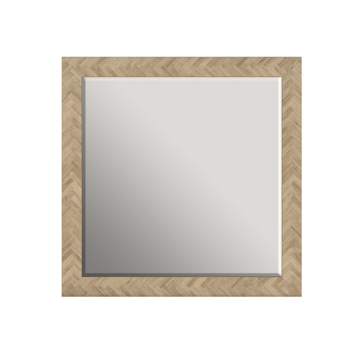 Featuring a captivating herringbone pattern fame that sets this mirror apart, our Square Mirror serves as an eye-catching focal point in any room. The intricate design adds a touch of modern flair while the Washed Oak finish delivers a warm and inviting ambiance, infusing your space with a sense of natural beauty and tranquility, staying true to its casual roots. The glass? beveled edges not only add a touch of refinement but also create an interesting play of light, making it a striking focal point in any room.