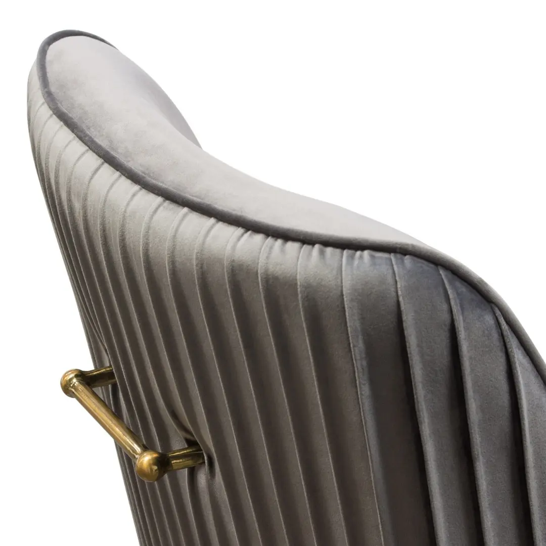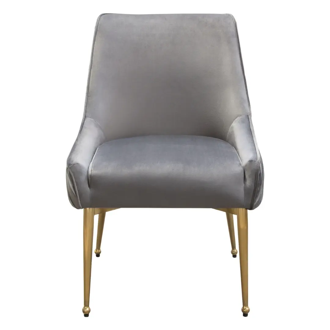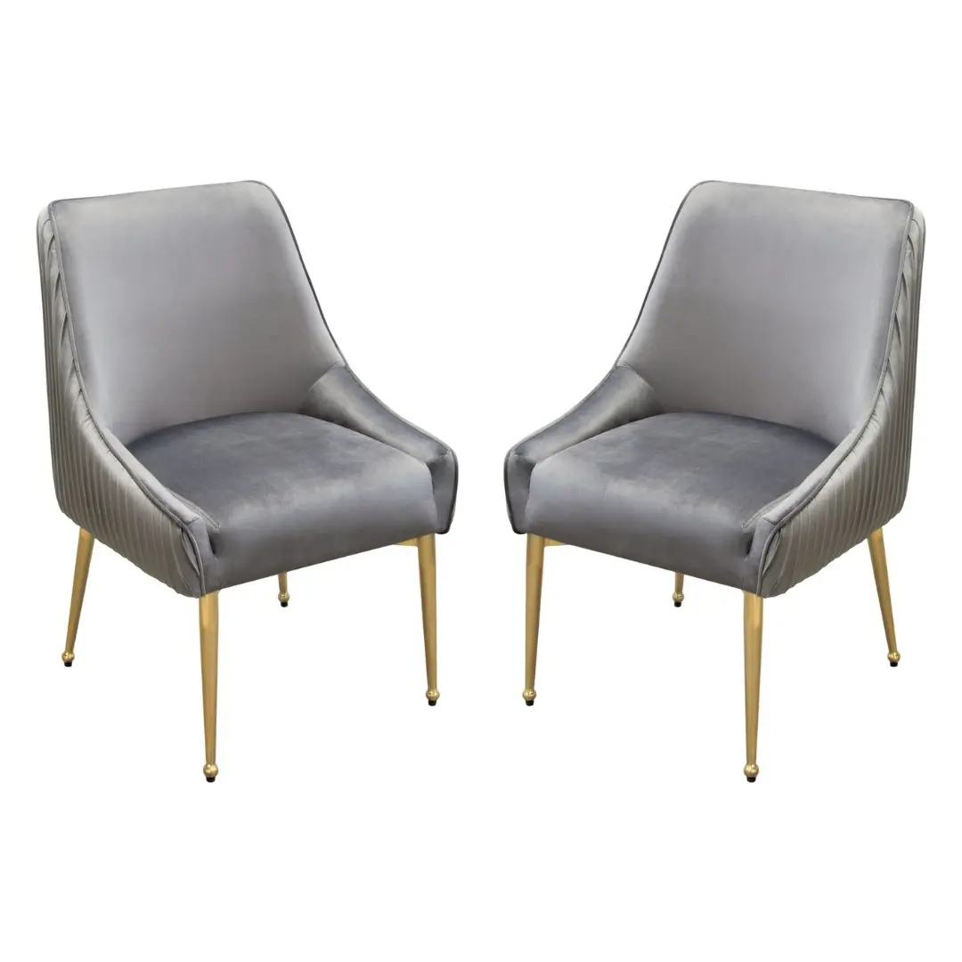 Experience luxury and comfort with the grey upholstered dining chair from Diamond Sofa. Designed with both style and function in mind, the Quinn Dining Chair combines plush velvet seating, a contemporary contoured arm, and exquisite vertical pleat detailing for a refined look in any dining room.