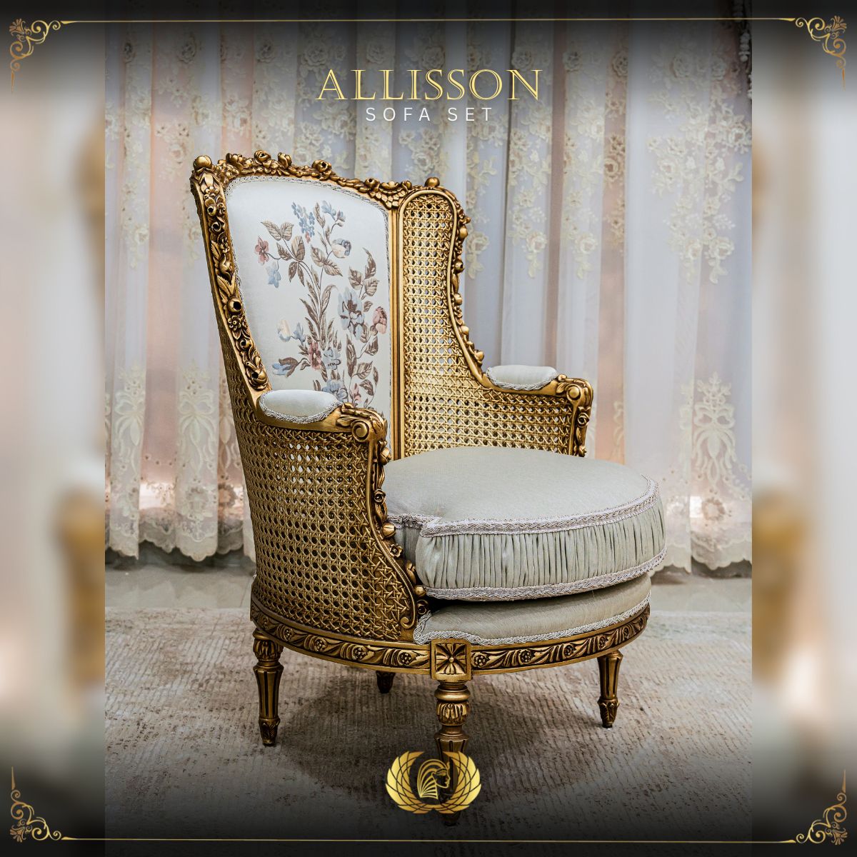Bring royal refinement to any corner with the ALLISON Chair — timeless Rococo design in a graceful form.