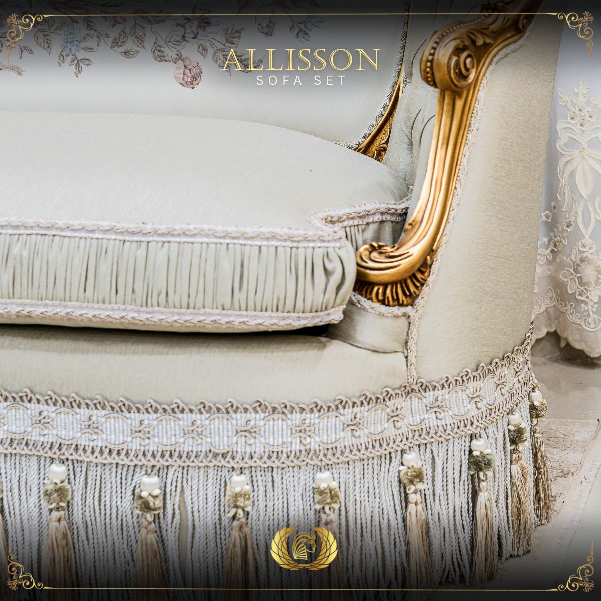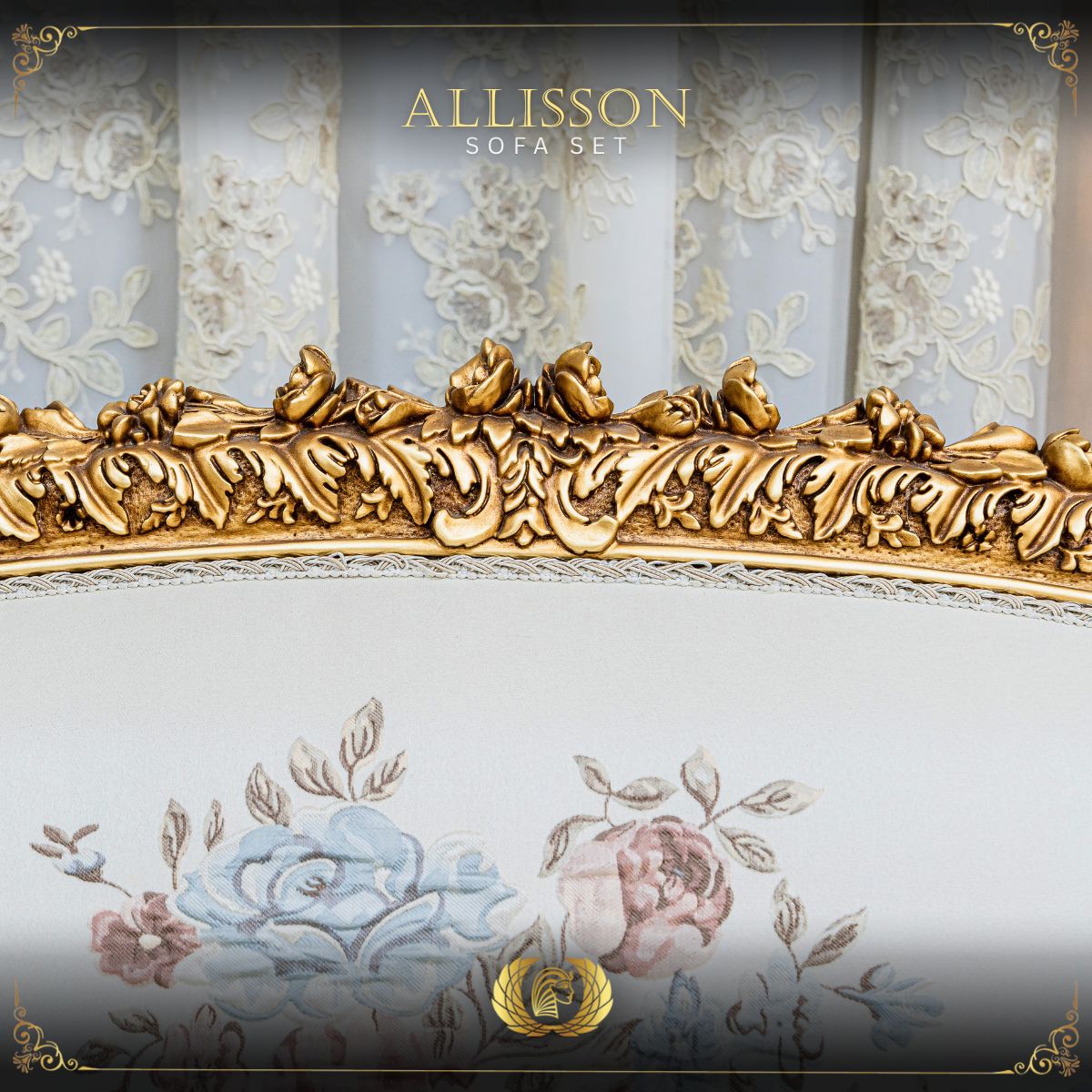 Redefine grandeur with the ALLISON Sofa — where ivory comfort meets golden craftsmanship.