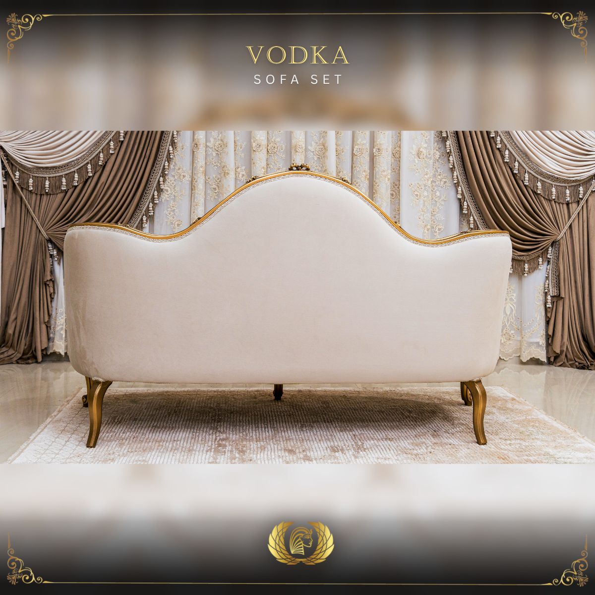 TheĀ Vodka Pearl LoveseatĀ byĀ Kleopatra KingdomĀ embodies intimacy and elegance. Built on aĀ gold-finished beechwood frame, it features sculpted carvings and flowing Rococo-inspired details. Wrapped inĀ cloud white fabric, it exudes sophistication while offering plush, tailored comfort for two. This loveseat balances refined luxury with a welcoming charm, perfect for smaller spaces or as a complement to the full set.