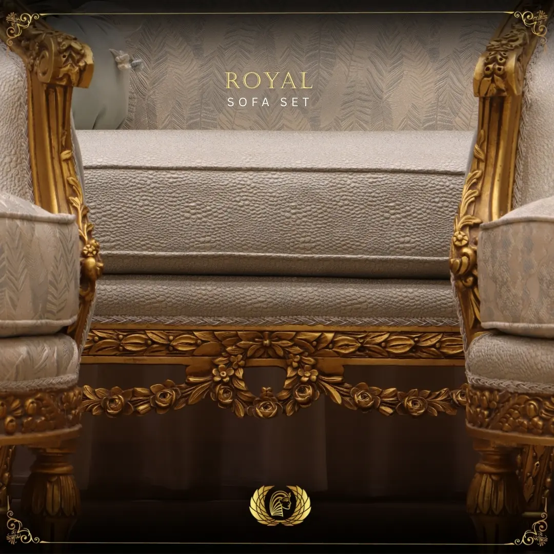 The Royal Baby Blue Sofa by Kleopatra Kingdom is a stunning centerpiece of classic European elegance. Handcrafted from solid beech wood, its frame features intricate hand-carved details finished in radiant gold, reflecting timeless regal artistry. Upholstered in a sophisticated blend of white dove and Palladian blue fabric, the sofa offers both luxurious comfort and refined style. Perfect for formal living rooms or grand salons, it brings an air of distinction and elegance to any interior.