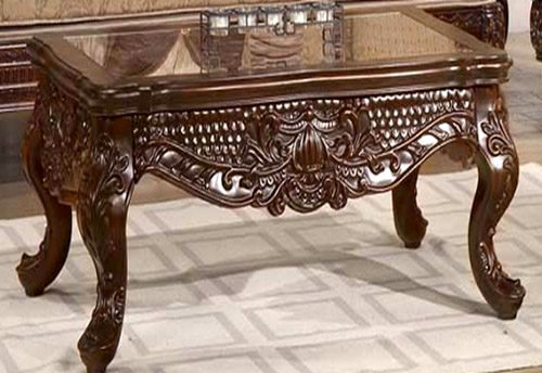 This end table features a rich mahogany finish that adds warmth and sophistication to any room. The meticulously carved details create an opulent aesthetic, making it a perfect addition to both classic and contemporary interiors.