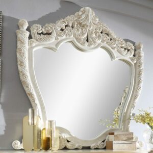 Bring refined elegance and timeless charm to your bedroom with the White & Gold Brush Highlights Finish Mirror HD-1806 By Homey Design. Designed as a luxurious accent for high-end spaces, this mirror is a flawless blend of European-inspired detailing and durable craftsmanship. Whether you’re completing your master suite or upgrading your dressing area, this piece elevates your room with sophistication and radiance.