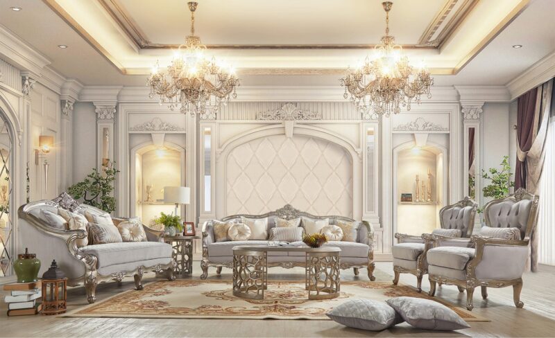Luxury Silver 3 PCs Sofa Set HD-20339 By Homey Design