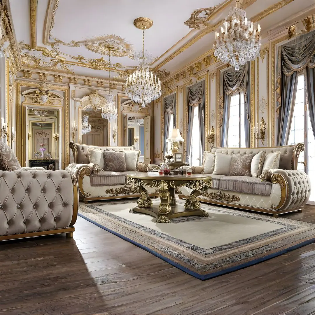 Designed with a deep understanding of luxury aesthetics, the HD-25 Homey Design sofa set features intricately carved solid wood frames lavished in an antique gold finish, beautifully contrasting with the plush Perfect Brown upholstery. The high-density foam cushions offer exceptional support, allowing for extended comfort without compromising style.