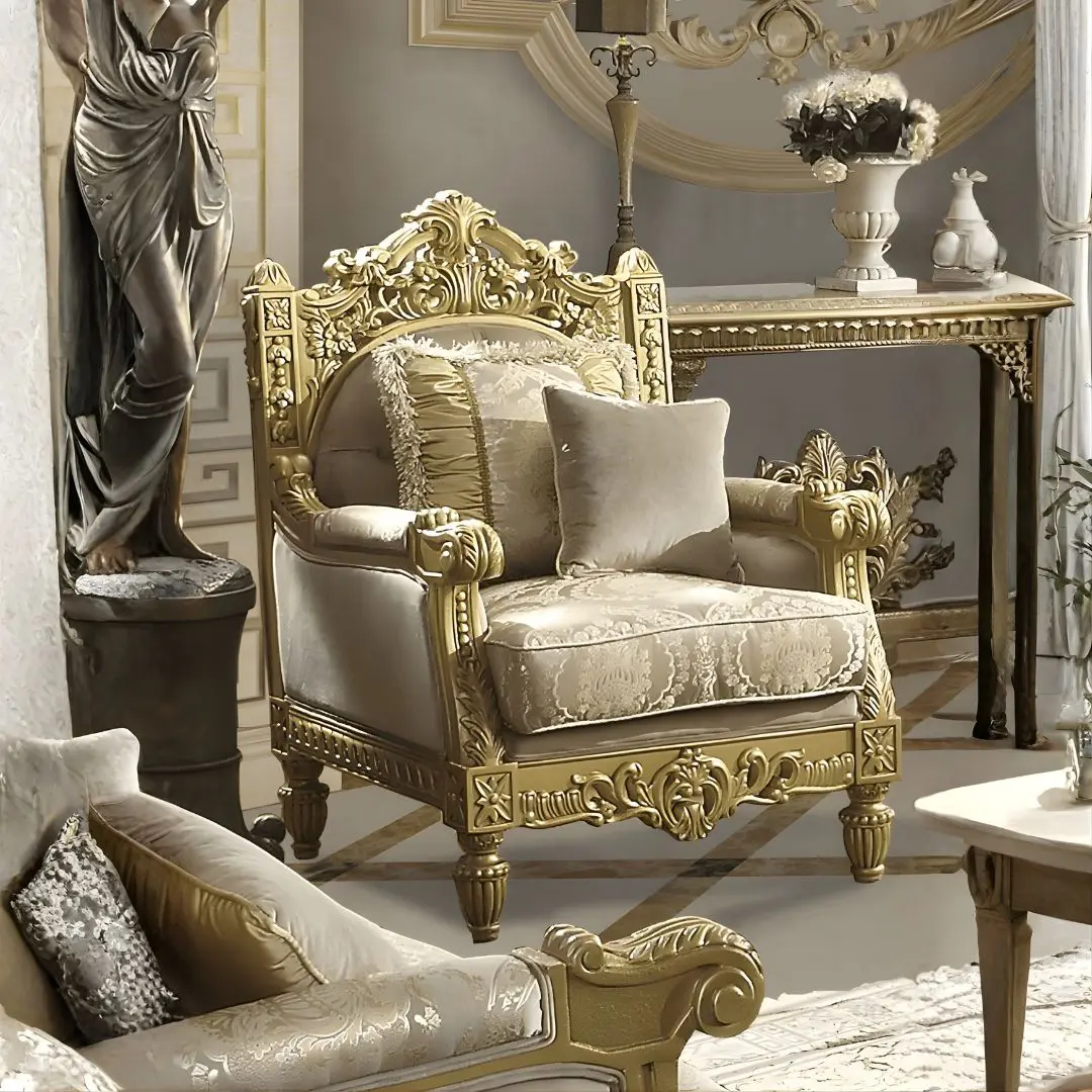 ChatMetallic Bright Gold Sofa Carved Wood Traditional Homey Design HD-2659