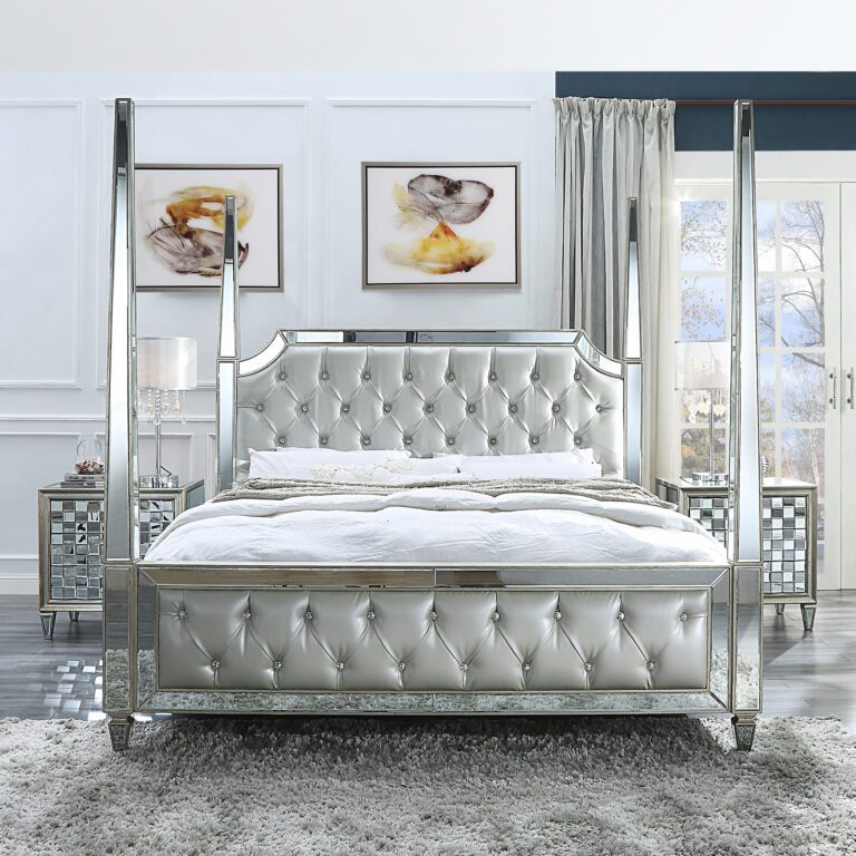 Whether you’re furnishing a sophisticated primary suite or redefining your high-end guest bedroom, the Silver & Mirror Finish 5 PCs Eastern King Bedroom Set HD-6001 offers an unforgettable visual impact. The synergy of metallic tones and reflective accents brings a dramatic, yet cohesive ambiance to any luxury setting.