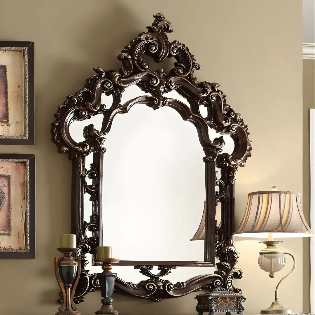 This statement piece features a beautifully sculpted frame in a radiant metallic silver finish that captures and reflects ambient light, adding depth and dimension to any space. Whether placed above a console in a formal entryway or as a glamorous centerpiece in a master suite, the HD-8017 mirror enhances your décor with regal charm and modern opulence.
