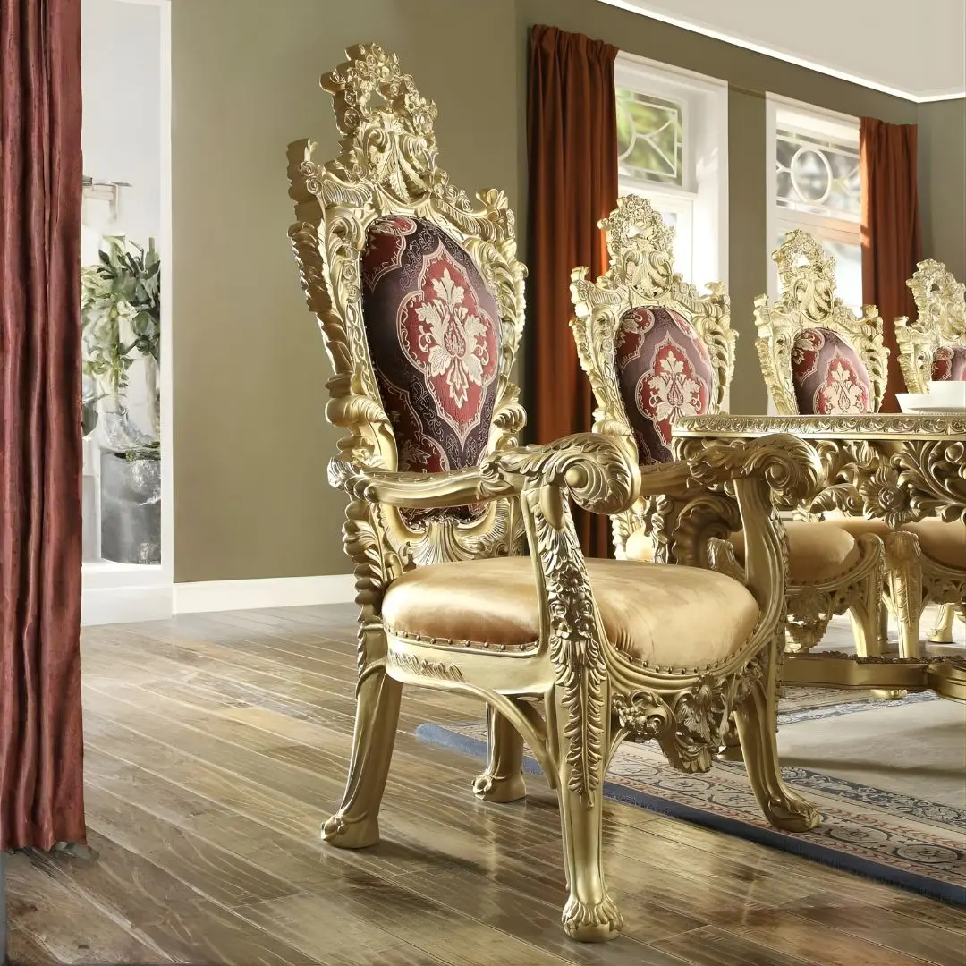 Whether used as a head-of-the-table chair, luxurious bedroom accent, or refined sitting room feature, the Metallic Bright Gold Arm Chair HD-8086 becomes the focal point of any space. Pair with other Homey Design HD-8086 pieces for a cohesive royal atmosphere or let it shine alone as a signature piece.