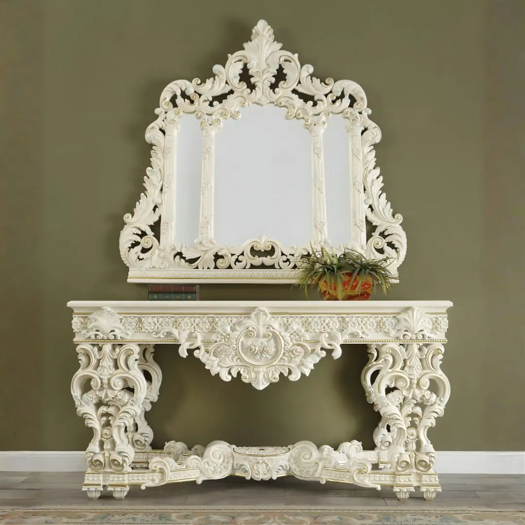 White Vintage Victorian Console Table Finish HD-8089 By Homey Design
