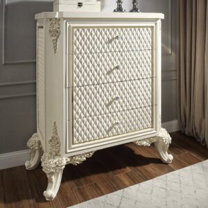 White Gloss & Gold Brush Highlights Finish Chest HD-8091 by Homey Design – A Luxe Statement in Bedroom Storage