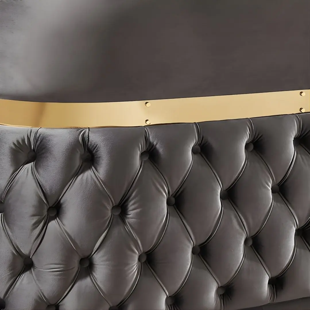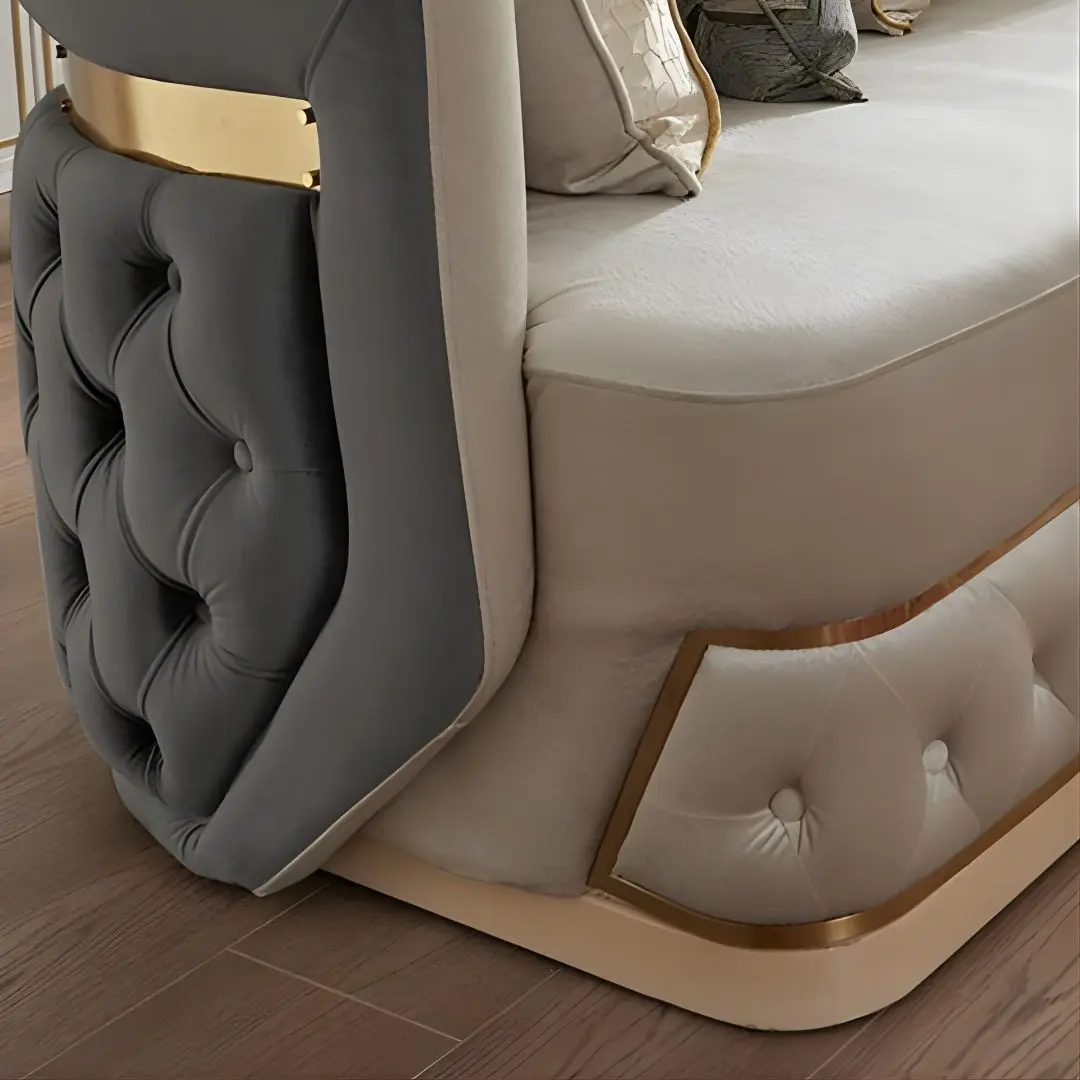Elevate your home interior with the HD‑9008 Sofa By Homey Design, a statement piece that seamlessly blends European elegance with transitional charm. Featuring luxe gray and beige upholstery with subtle golden accents, this luxury sofa is designed for homeowners and designers seeking timeless sophistication without compromising on comfort. A centerpiece of the HD‑9008 Living Room Collection, it effortlessly enhances both formal and casual spaces with its refined silhouette and plush seating.
