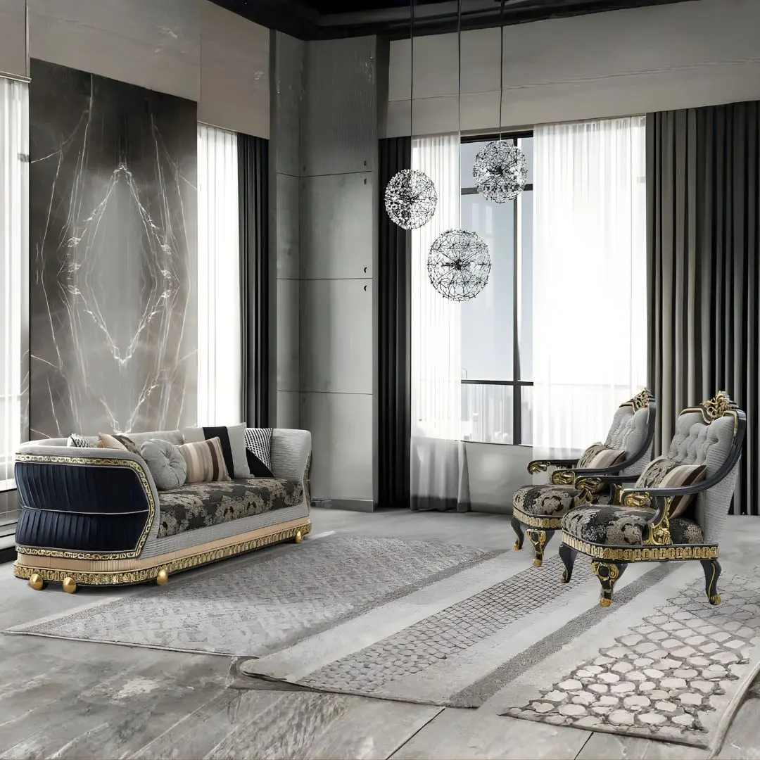 The HD-9013 3PC Sofa Set showcases a cohesive traditional design enhanced by finely sculpted arms, subtle curves, and elegant proportions. It’s a set that commands attention without overpowering your space — perfect for formal or family-friendly lounges.