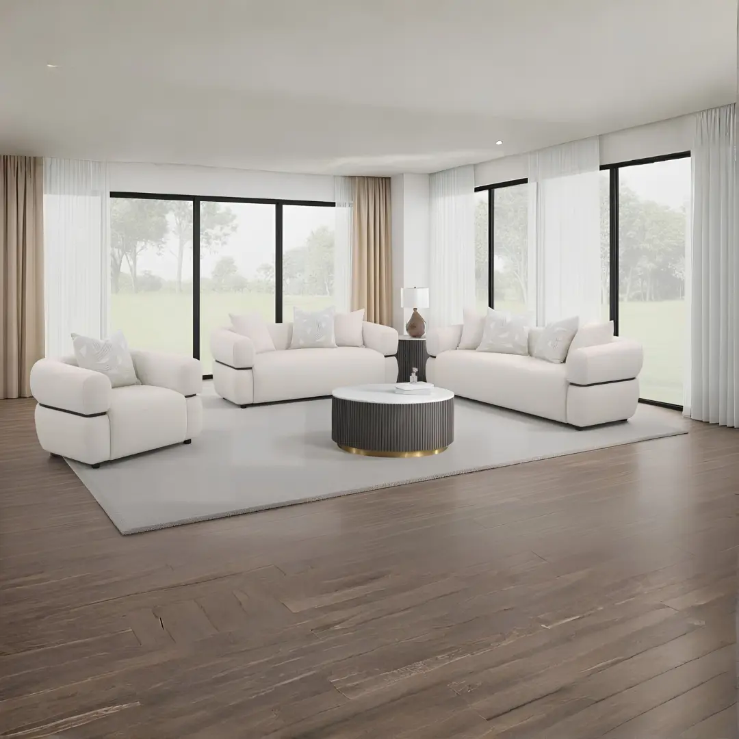 Designed for contemporary homes, this set adapts beautifully to both open-plan spaces and formal living rooms. Its neutral palette and sculptural form make it a flexible centerpiece for many interior styles.
