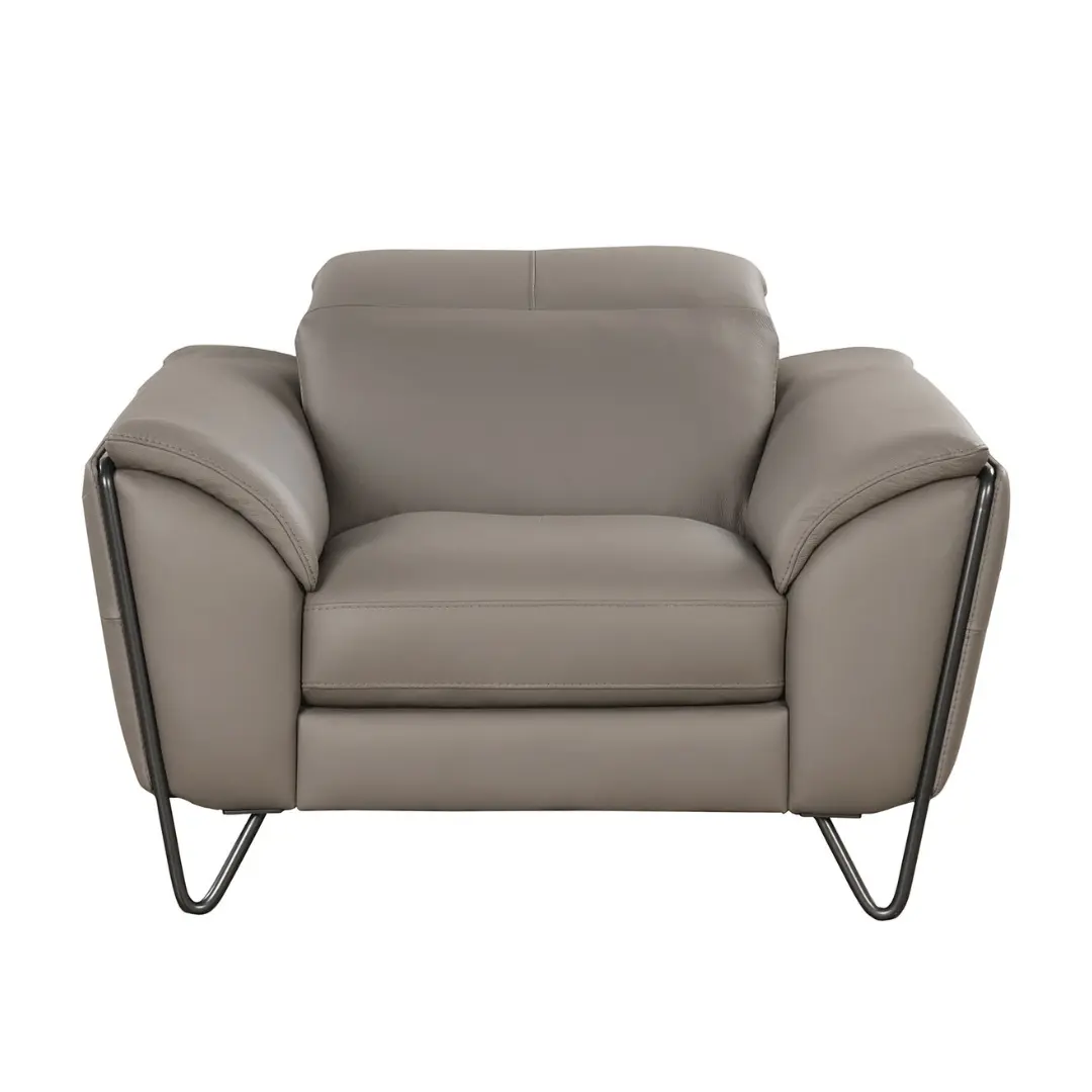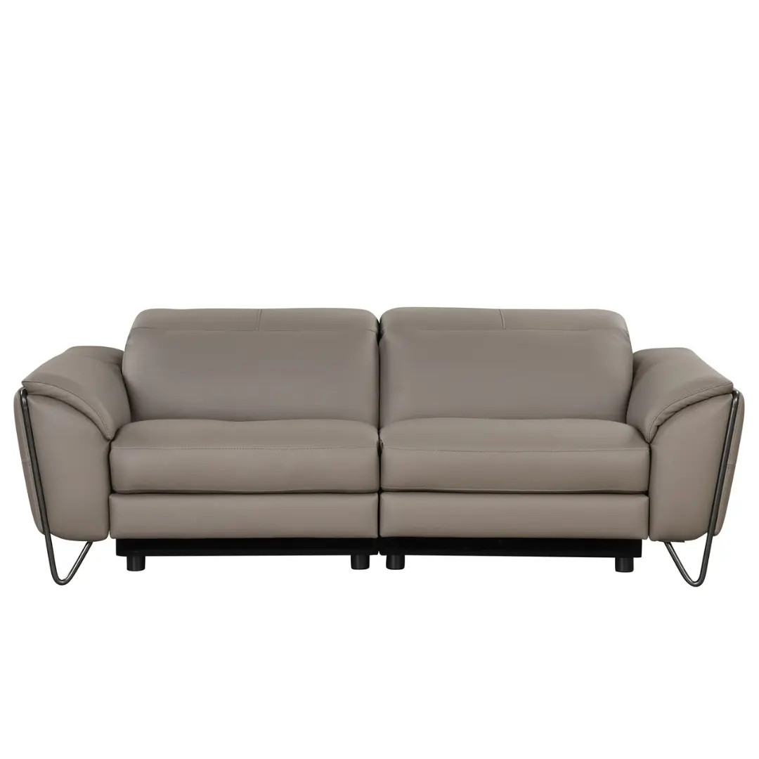 The Lavinia Collection by Nicoletti Sofas brings modern elegance and superior comfort to your living space. Expertly designed in Italy, this sophisticated 3-piece set includes a sofa with dual power recliners, a loveseat, and an armchair—all upholstered in luxurious 100% full leather in a stylish gray Minerva 359-Visone tone.