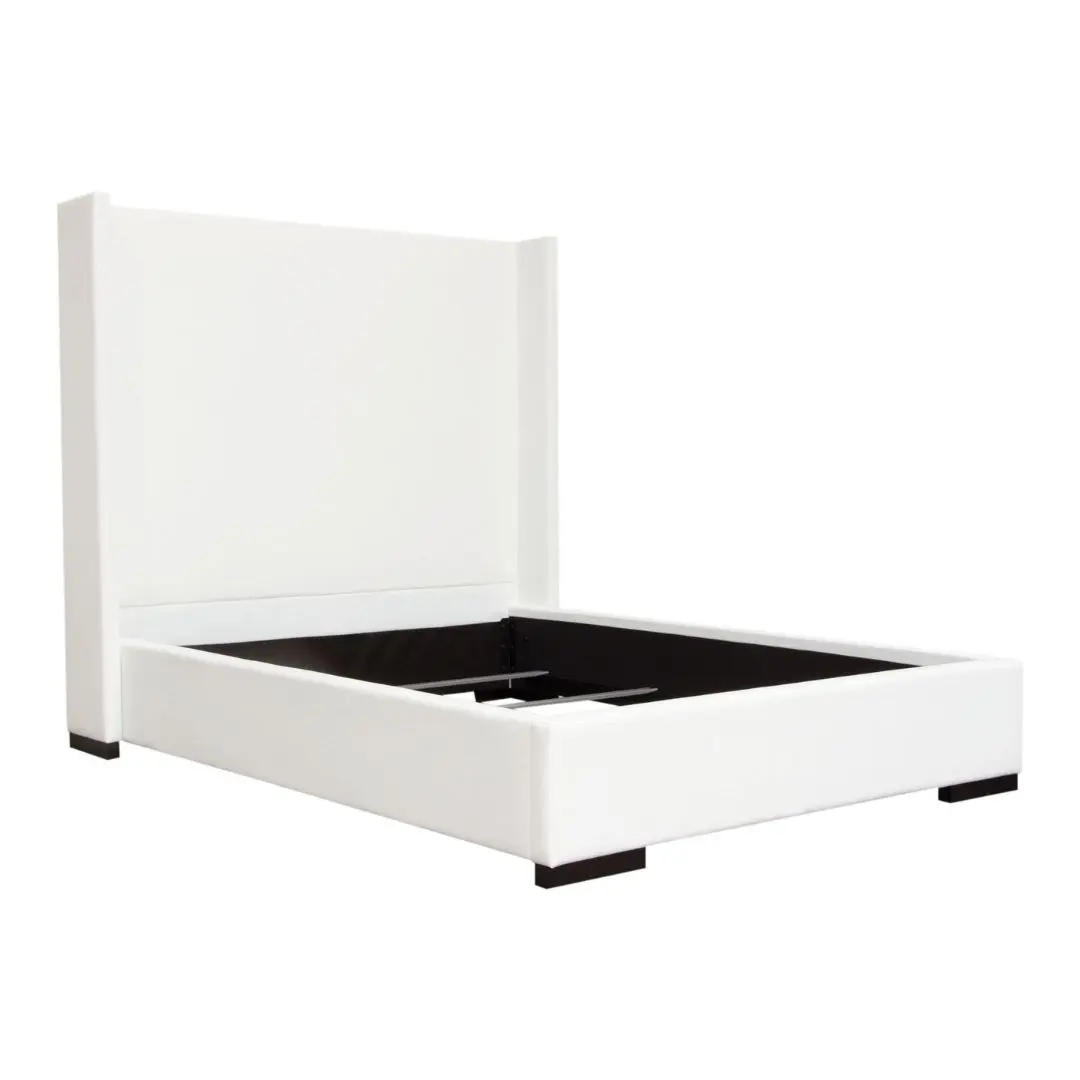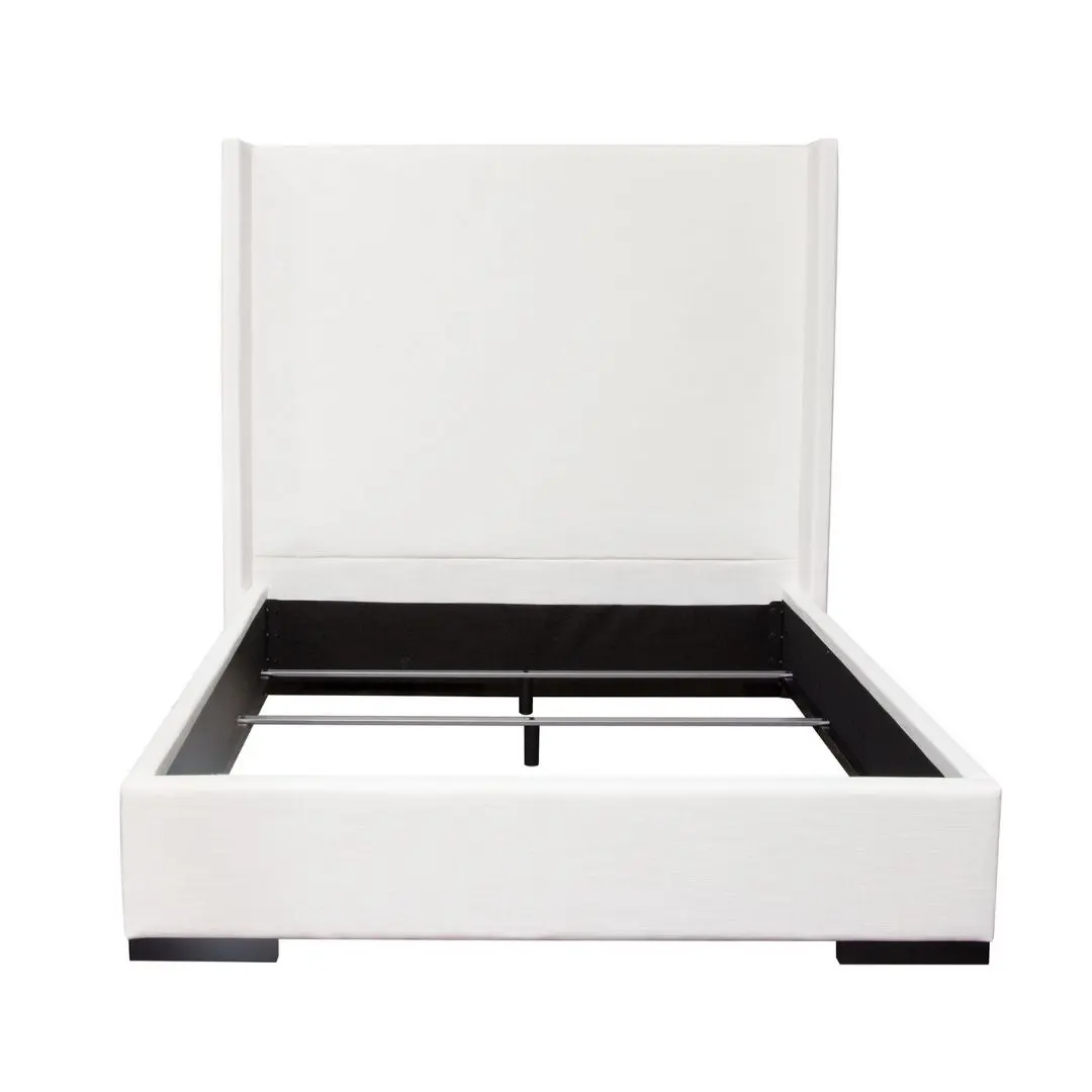 Elevate your bedroom with the Seattle Queen Bed with Vintage Wing in White Linen by Diamond Sofa. This white contemporary bed combines handcrafted quality, elegant design, and functional support to create a centerpiece that enhances any modern or transitional bedroom décor. Standing 69 inches tall, its panel headboard features vintage wing accents, creating a striking silhouette that exudes sophistication and timeless charm.