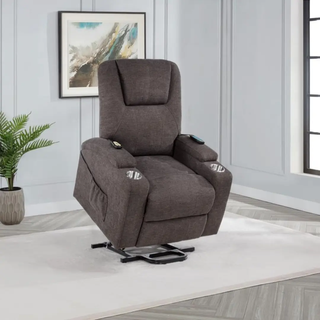 The power recliner chair with remote from the Louie Collection is designed to transform everyday seating into a restorative comfort experience. Blending modern functionality with plush chenille upholstery, this chair offers smooth power lift assistance, heated massage, and vibration therapy—all controlled effortlessly with a wired remote. Whether you choose the warm brown tone or the sleek dark grey finish, it delivers both style and therapeutic support for your living space.
