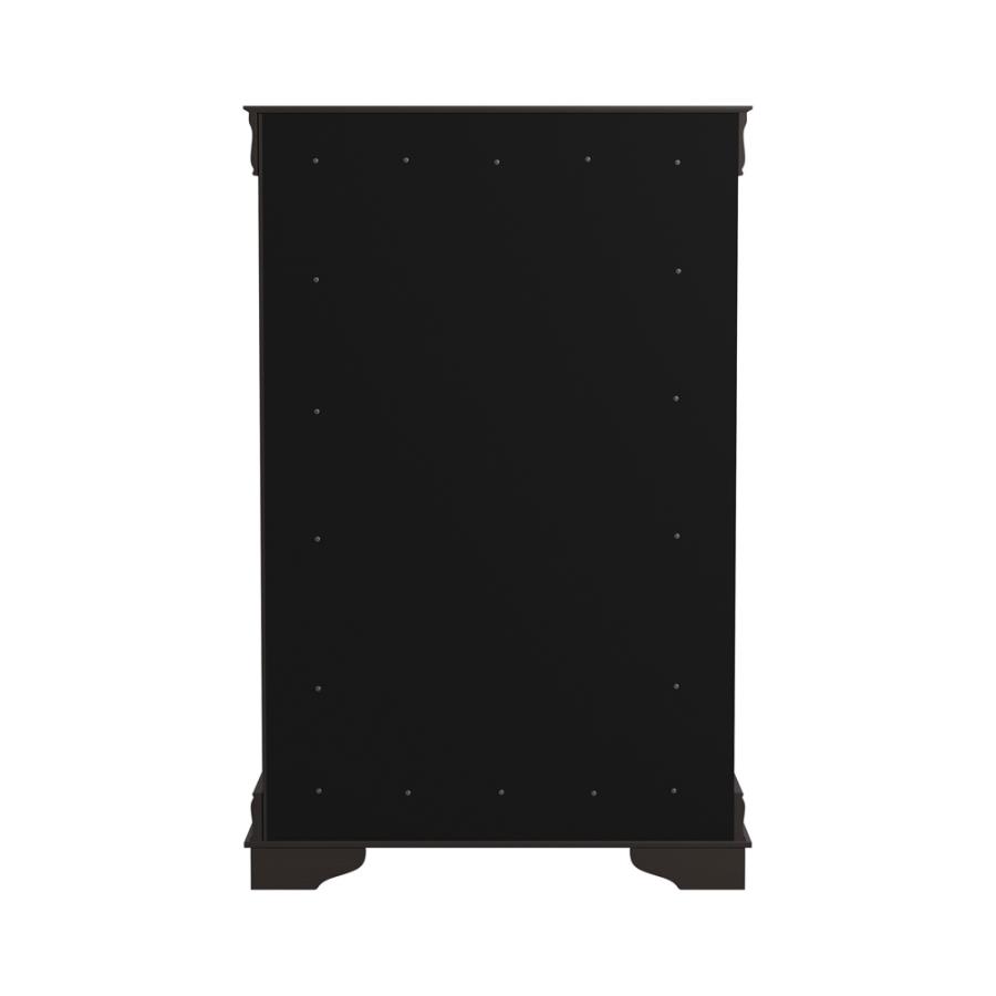 Timeless elegance meets enduring craftsmanship with the Louis Philippe 5-Drawer Chest with Silver Bails Cappuccino 202415 by Coaster Furniture. Designed to complement traditional interiors with refined style, this exquisite piece enhances any bedroom with its rich cappuccino finish, classic silhouette, and thoughtful construction details.