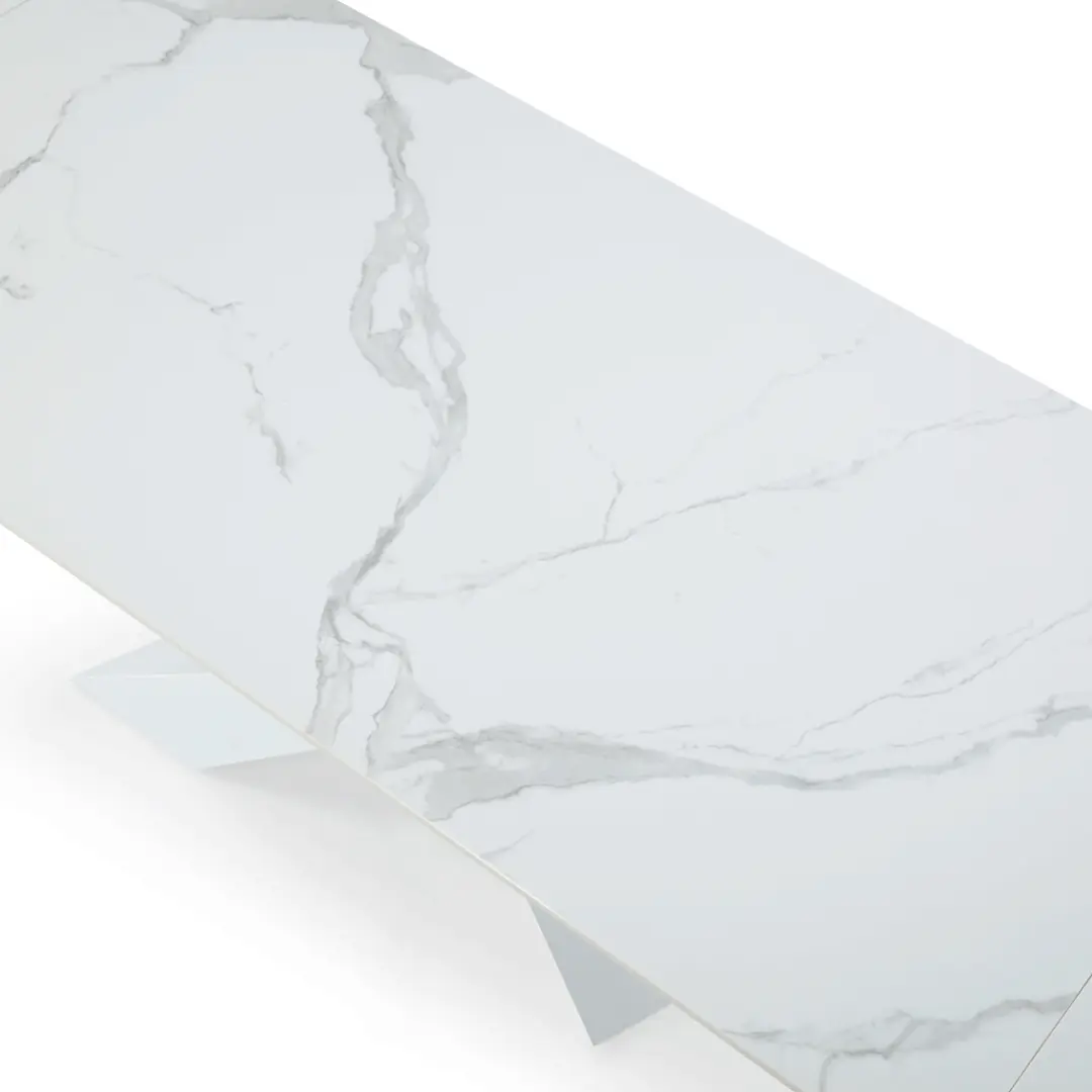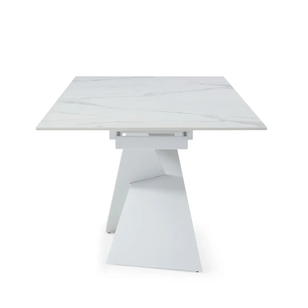 Engineered for durability and ideal for entertaining, the Mat 9113 Dining Table features a white ceramic top with a 12 mm thickness and a seamless extension mechanism, allowing you to comfortably accommodate additional guests without sacrificing aesthetics. The sanded white powder-coated metal legs provide a sturdy yet minimalist base, complementing both neutral and bold décor palettes.