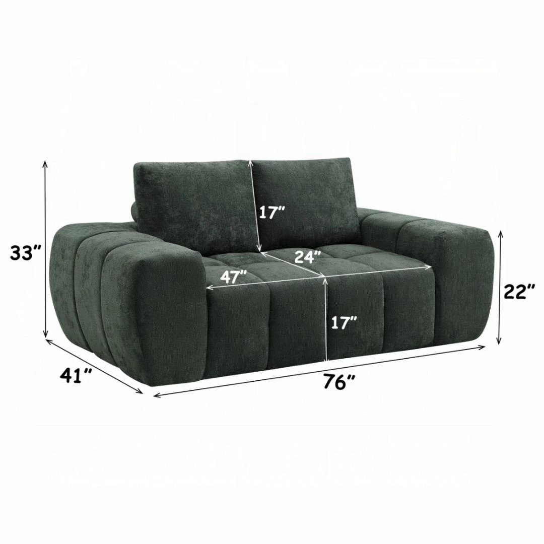 Built with a sturdy wooden inner frame, this green loveseat ensures long-term durability. Its compressed design allows for easy delivery and quick setup.