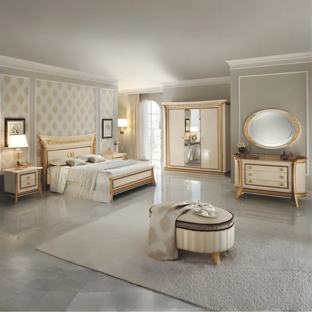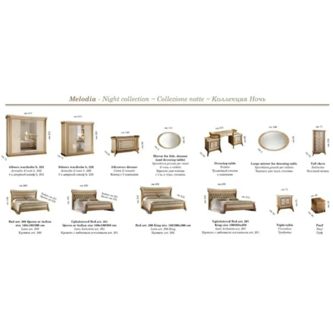 Transform your bedroom with the grace and artistry of classic Italian furniture. Call now or buy online from Mobilia Cleopatra Furniture—your trusted source for luxury European home furnishings. Experience personalized service and bring home the essence of timeless design with the Melodia Beige Bedroom Furniture Set p7204.