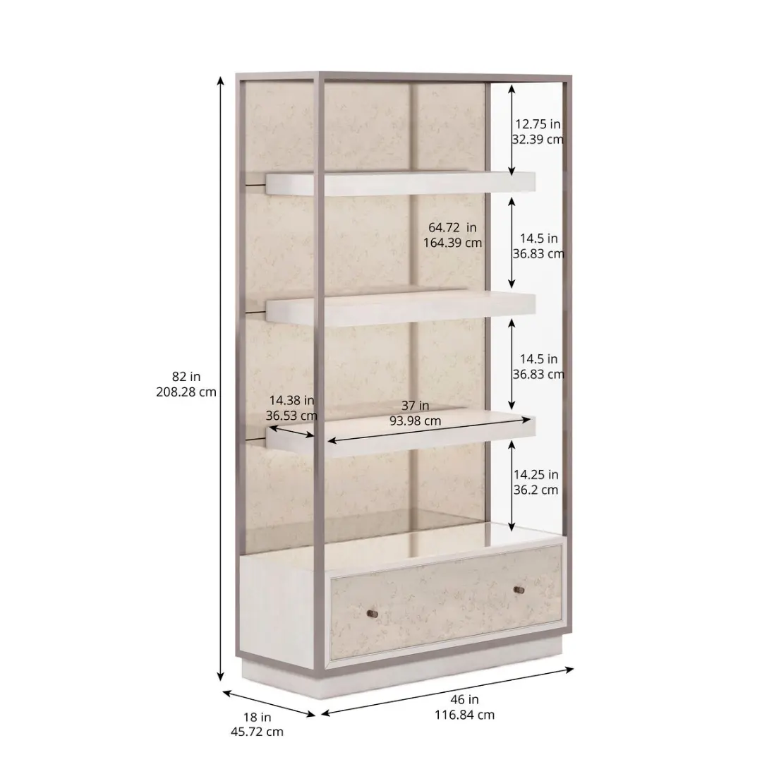 - 82” H luxury etagere designed with transitional sophistication
