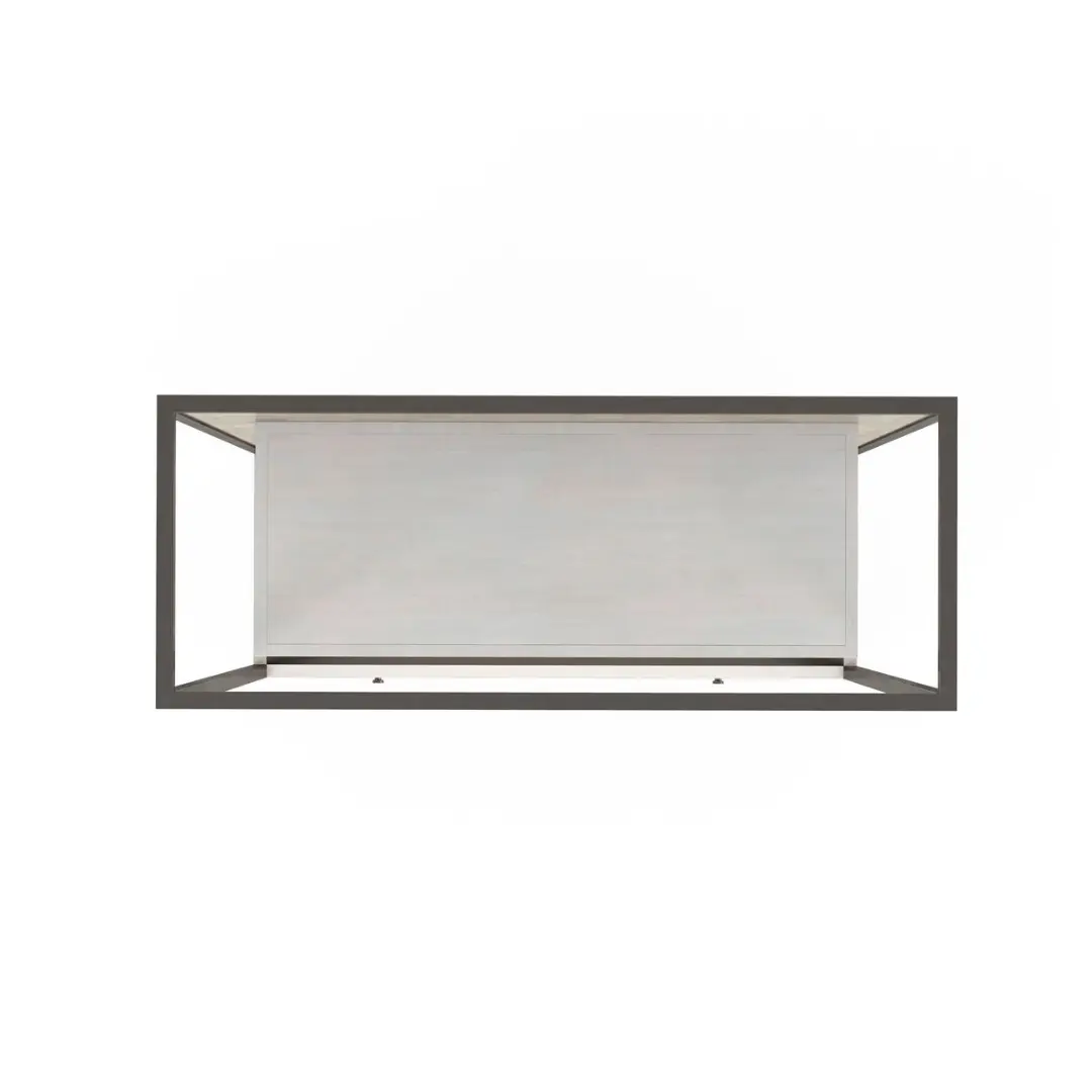 - Open framework with inset plinth base for visual balance