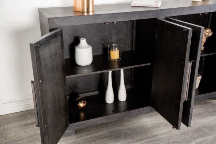 Modern Contemporary Weathered Black 4 Door Cabinet by Furniture of America