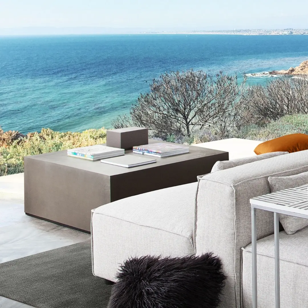 Square shape integrates seamlessly with both sectional sofas and lounge setups
