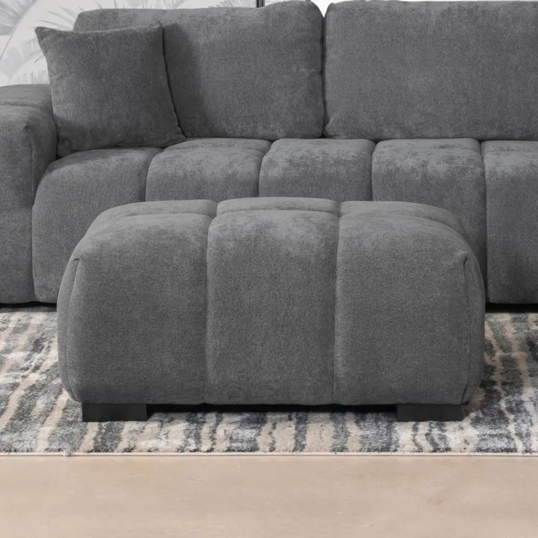 Its waterfall-style cushioning and soft grid tufting create a sculptural visual appeal while enhancing everyday comfort. Built for both beauty and durability, this ottoman is an essential accent for living rooms that prioritize both function and design.