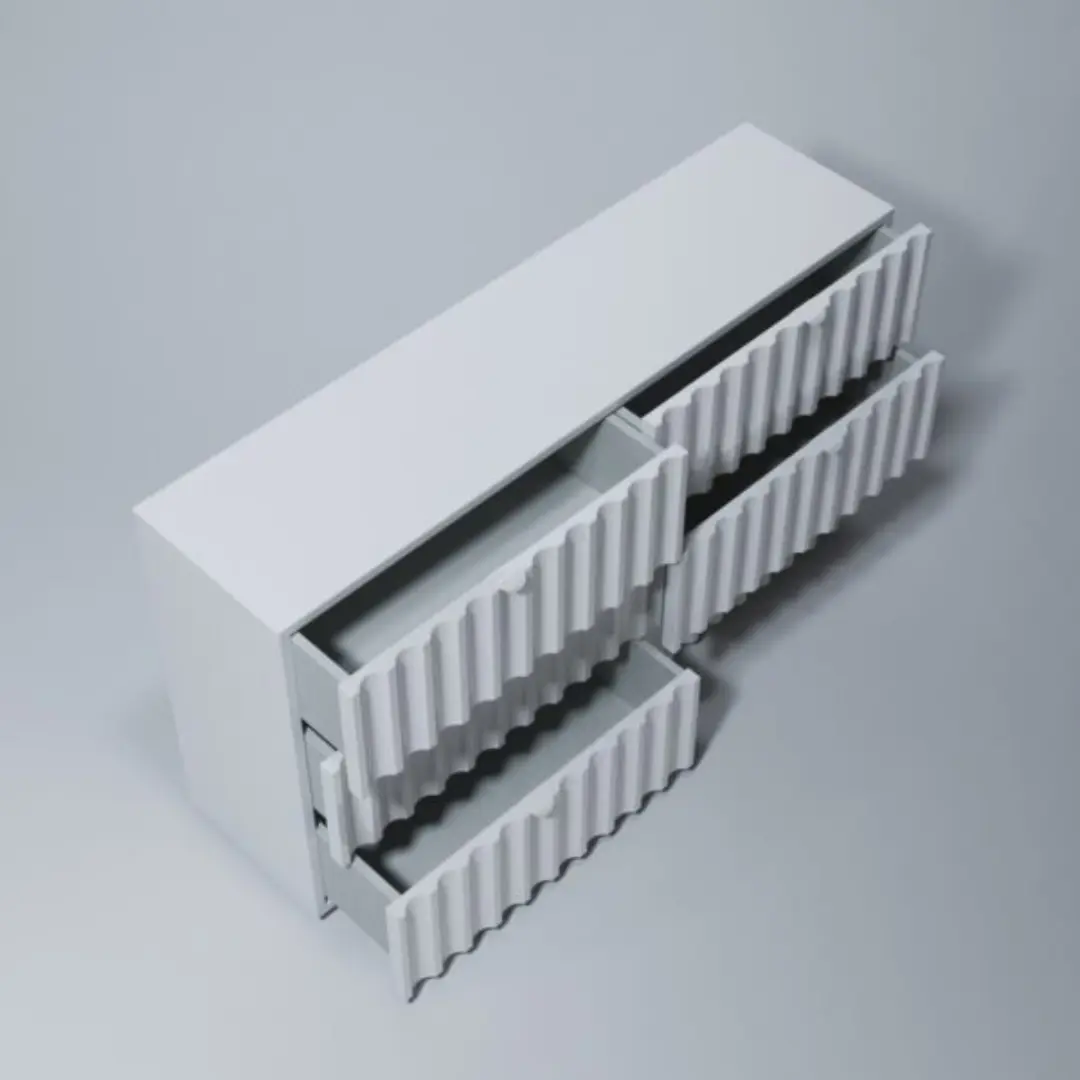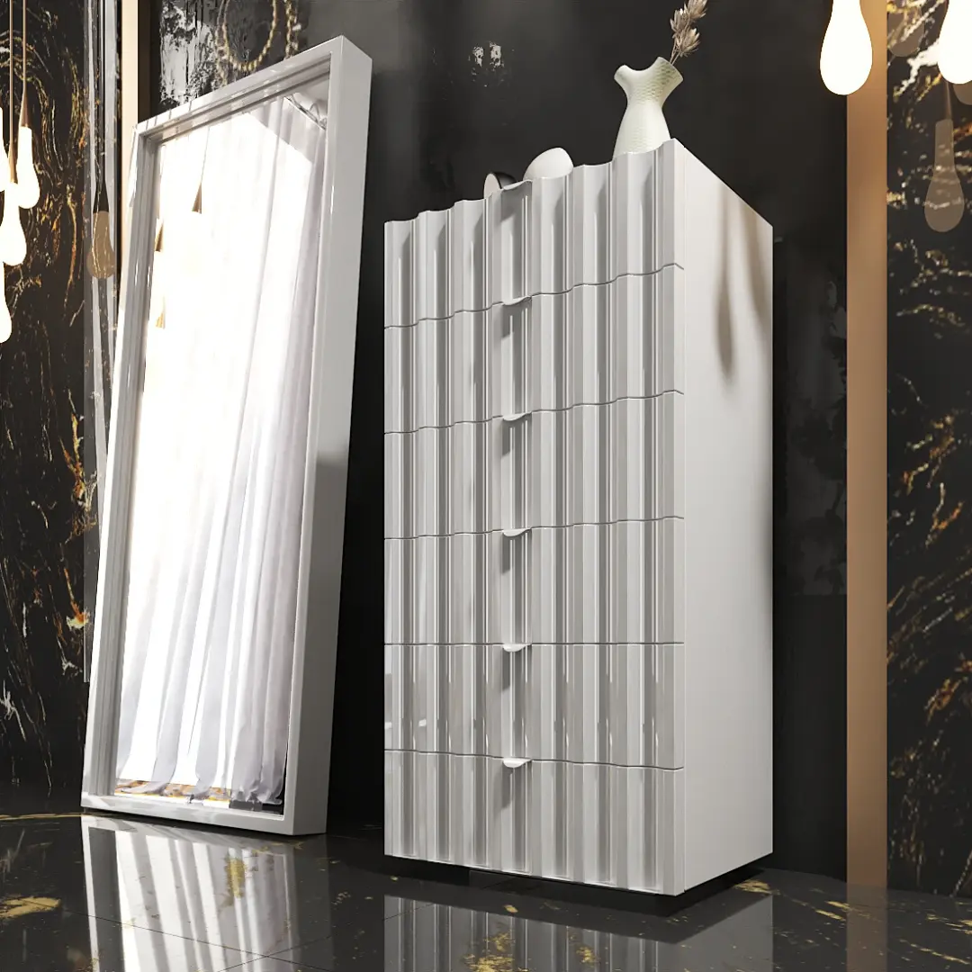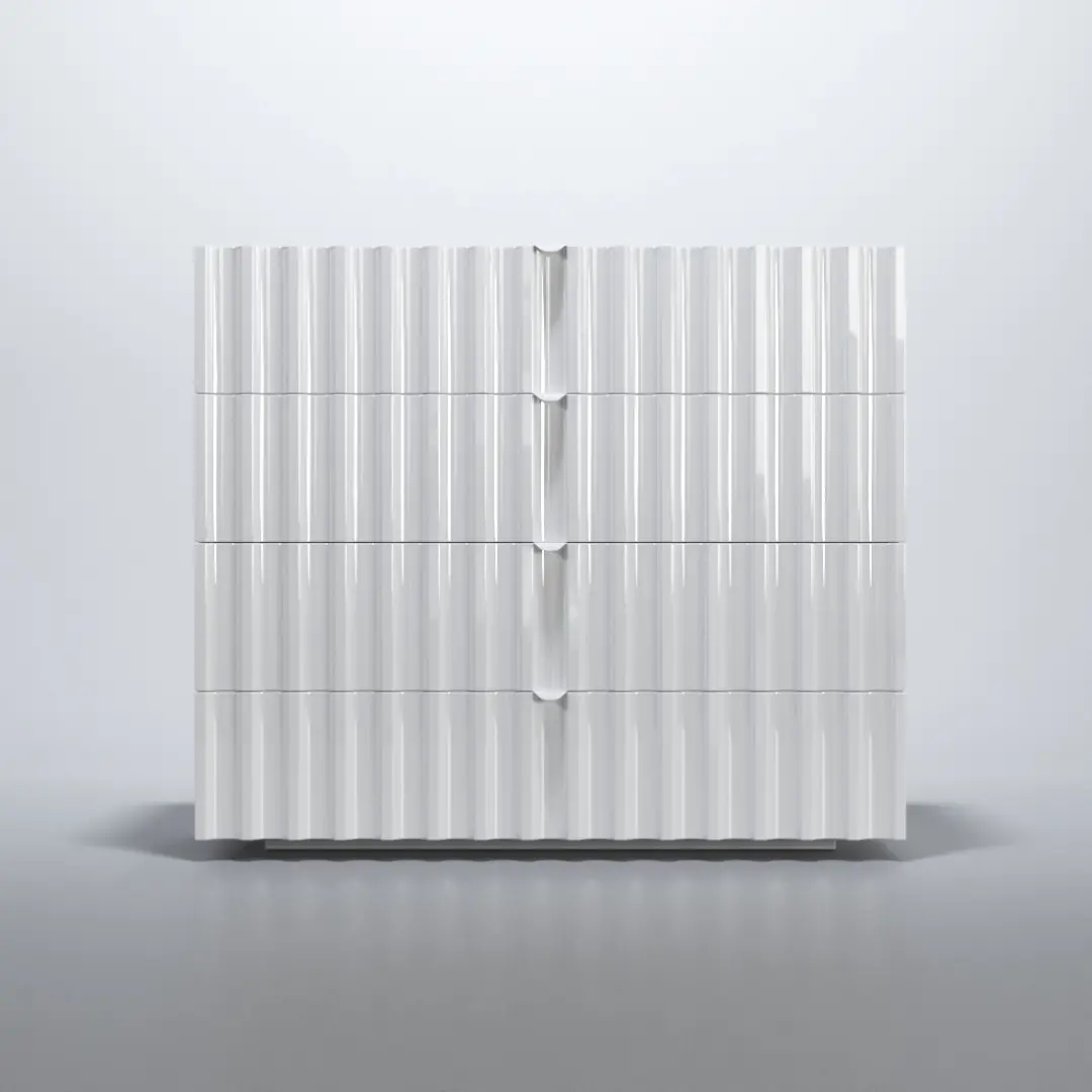 The Shiny Orion collection is defined by its clean lines and luminous textures. Each piece features a high-gloss lacquered finish that captures and reflects ambient light, enhancing the room’s natural brightness. The eco-leather upholstered headboard offers a tactile contrast, featuring a subtle embossed pattern that adds dimension and richness. This exquisite combination of materials exudes understated elegance while making the bed a true centerpiece.